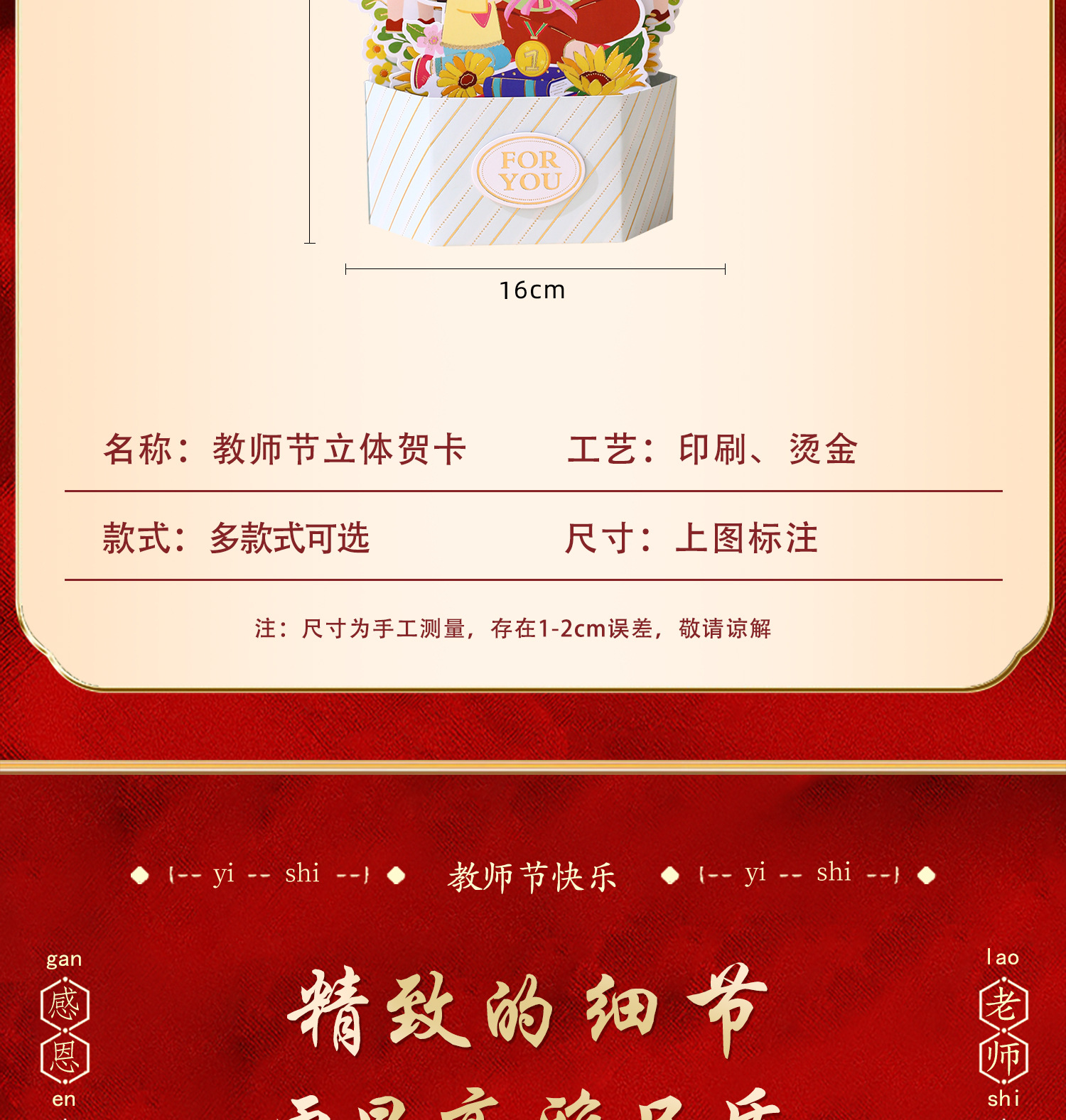 教师节礼物2025新款立体贺卡送老师谢师卡片感谢师恩明信片祝福卡 投诉