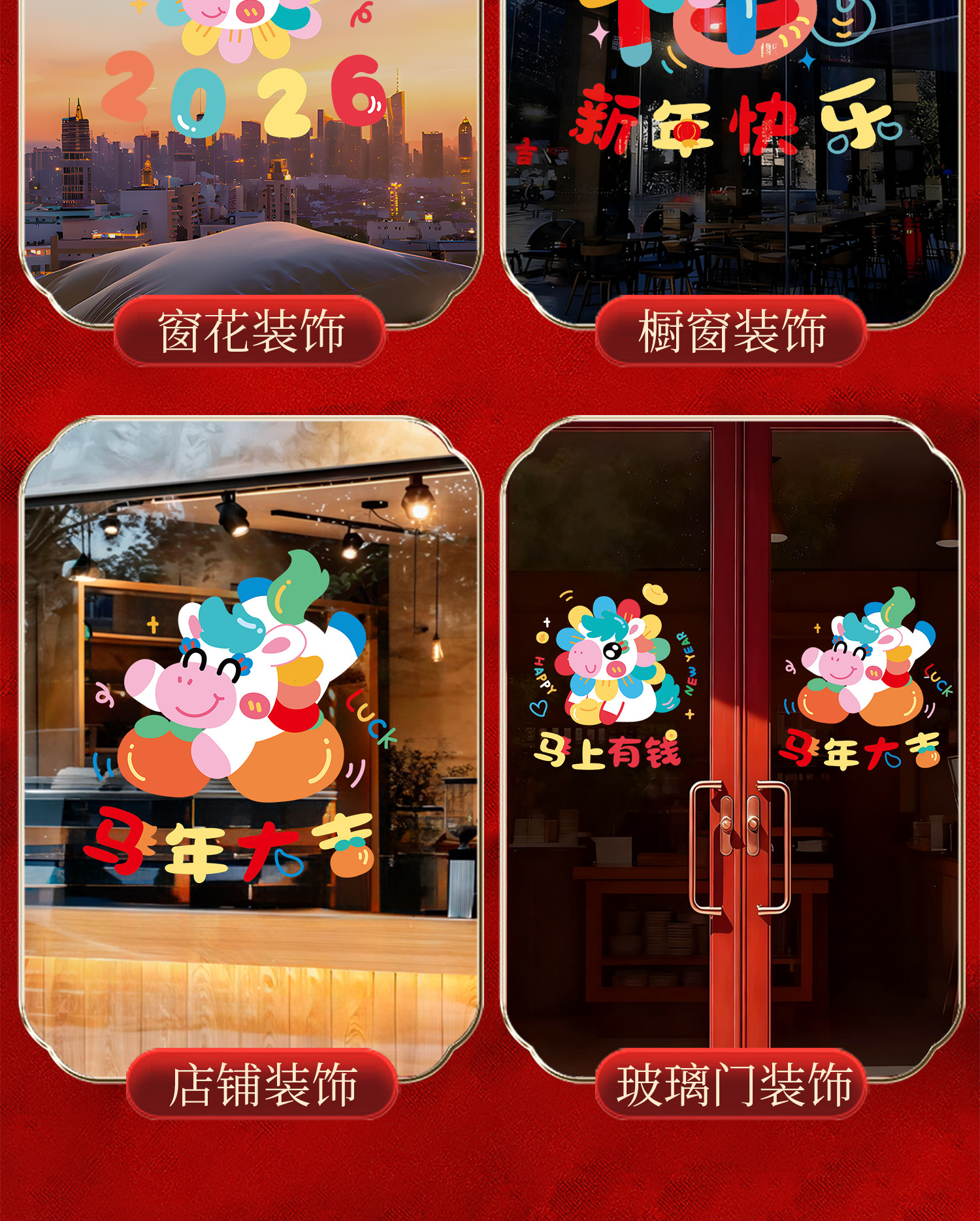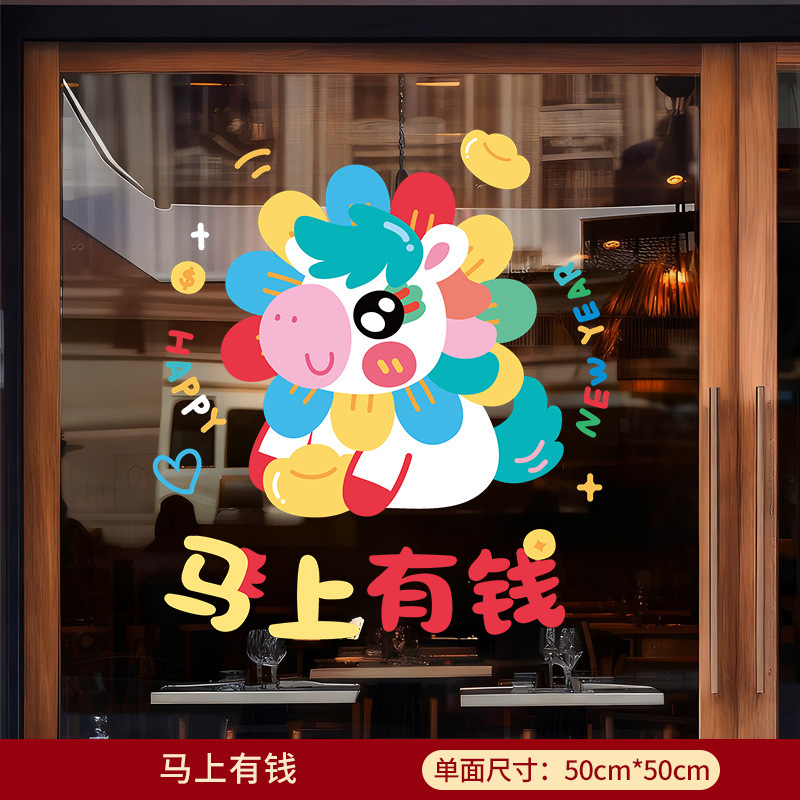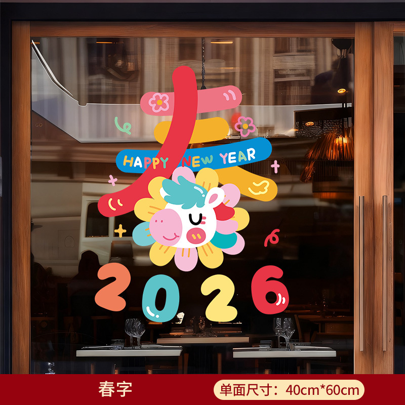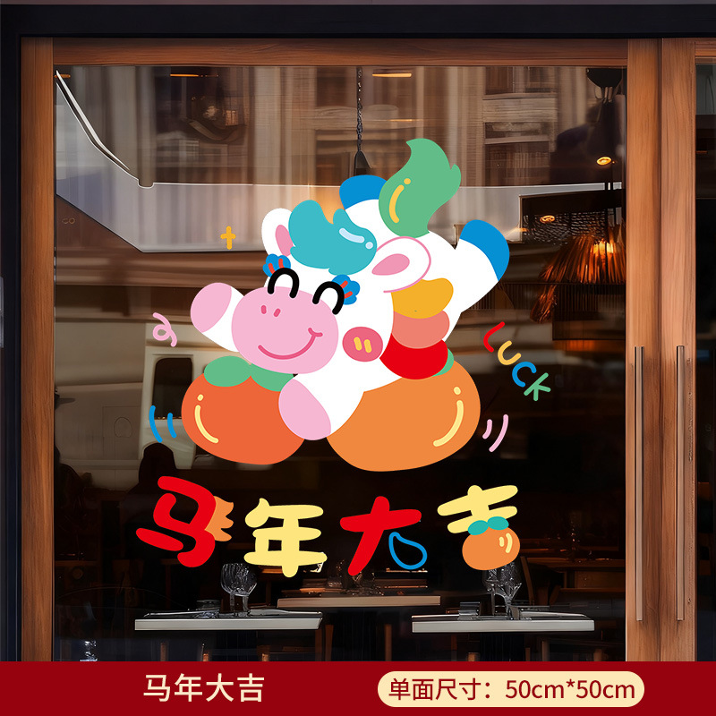新年窗花2026马年玻璃门贴纸静电贴过年双面氛围布置橱窗贴画装饰