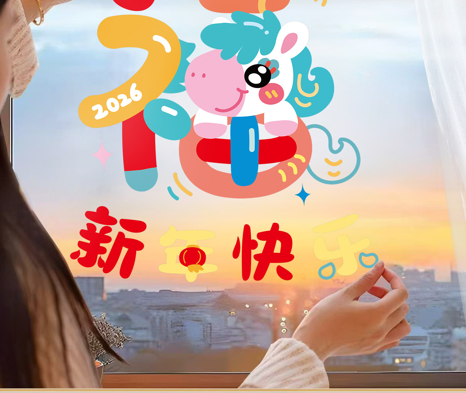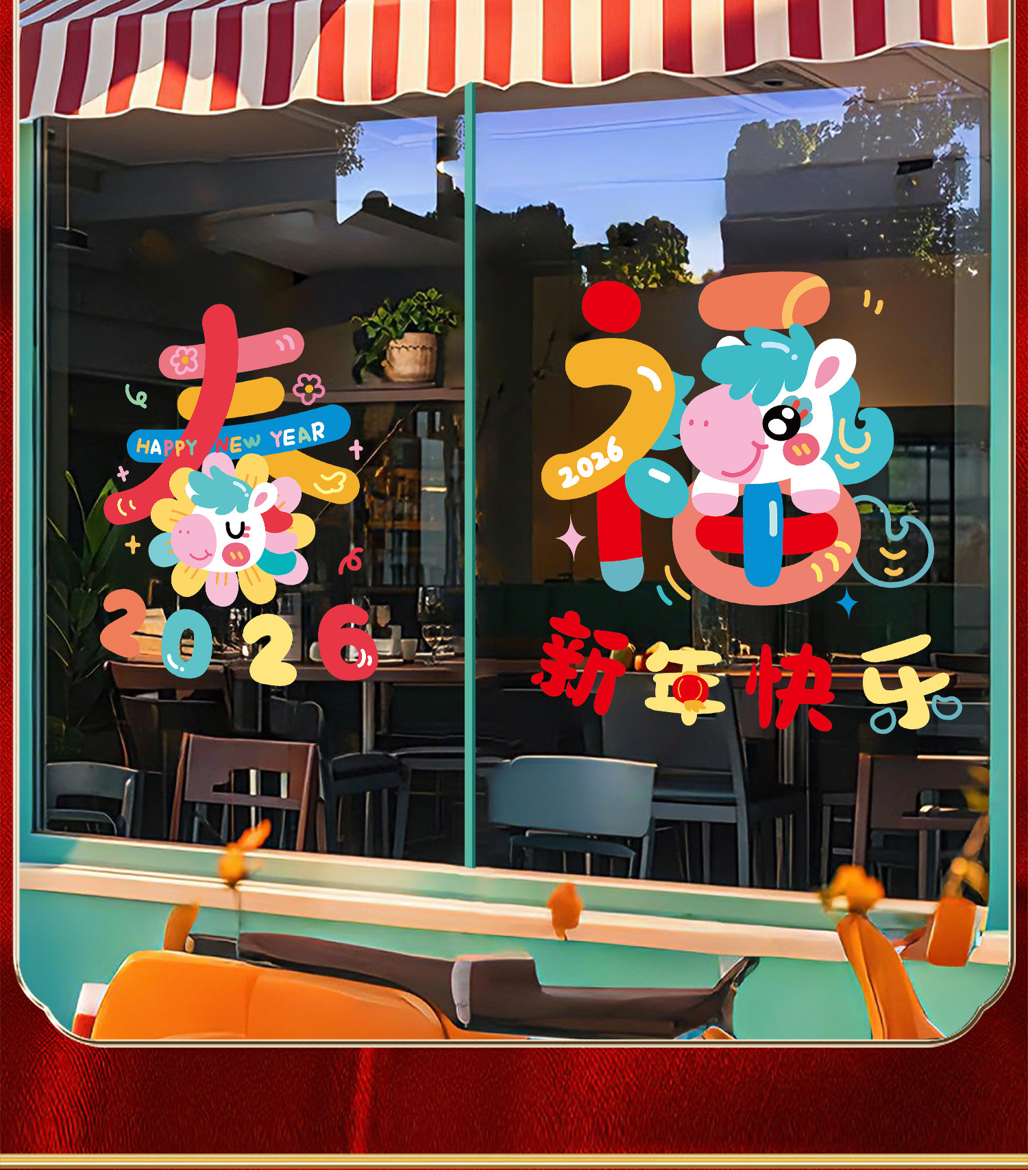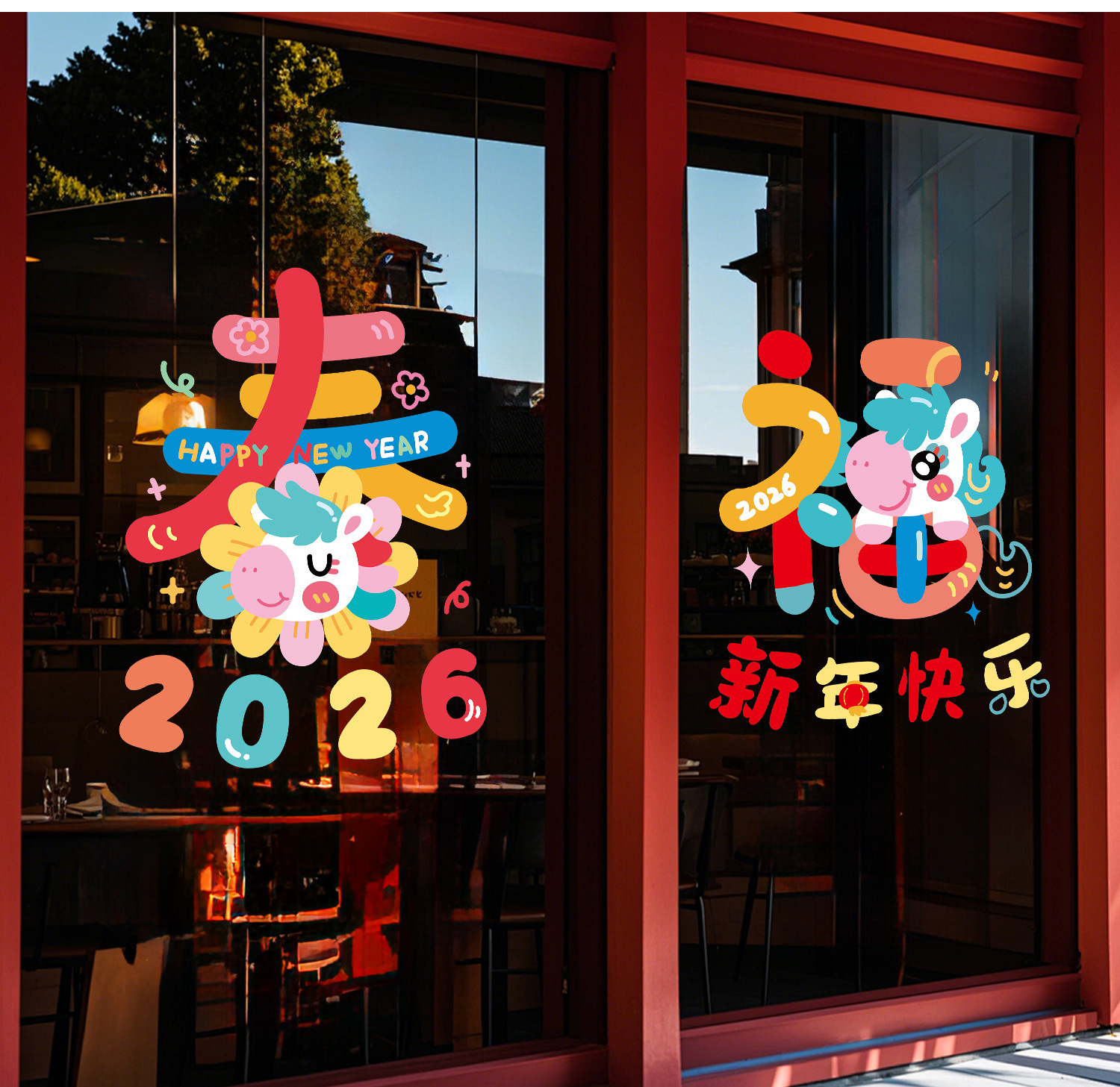 新年窗花2026马年玻璃门贴纸静电贴过年双面氛围布置橱窗贴画装饰