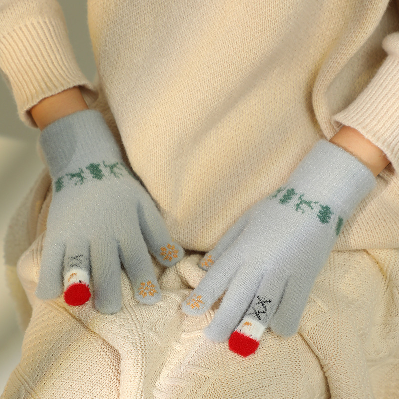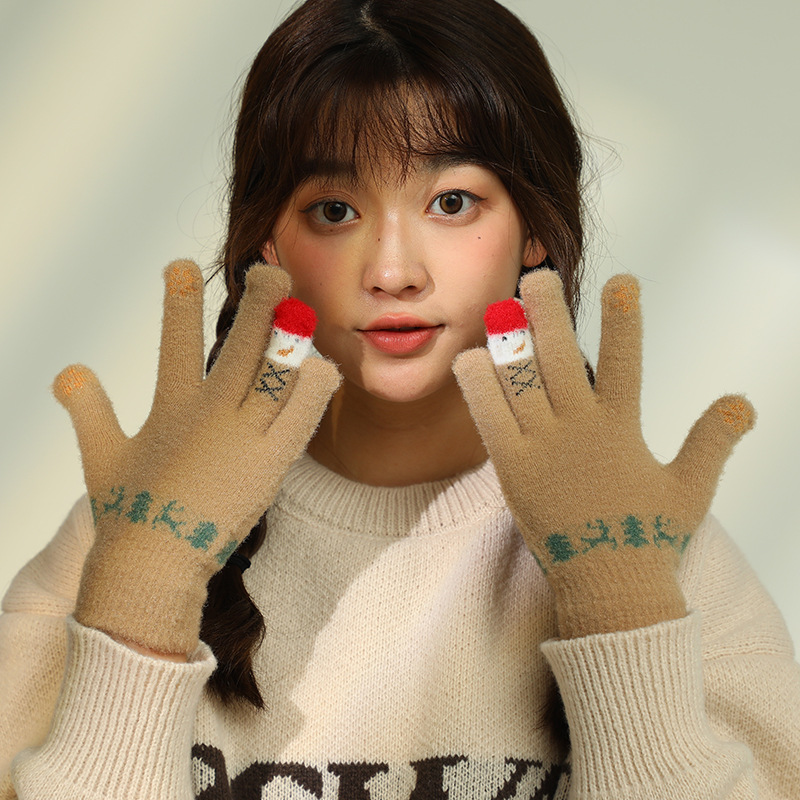 秋冬圣诞雪人触屏可爱学生手套情侣款针织防寒保暖骑行毛绒加厚潮 English | 投诉
