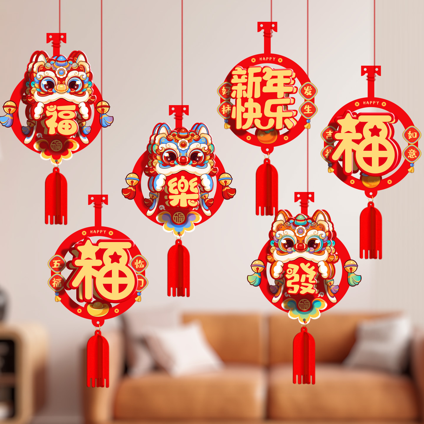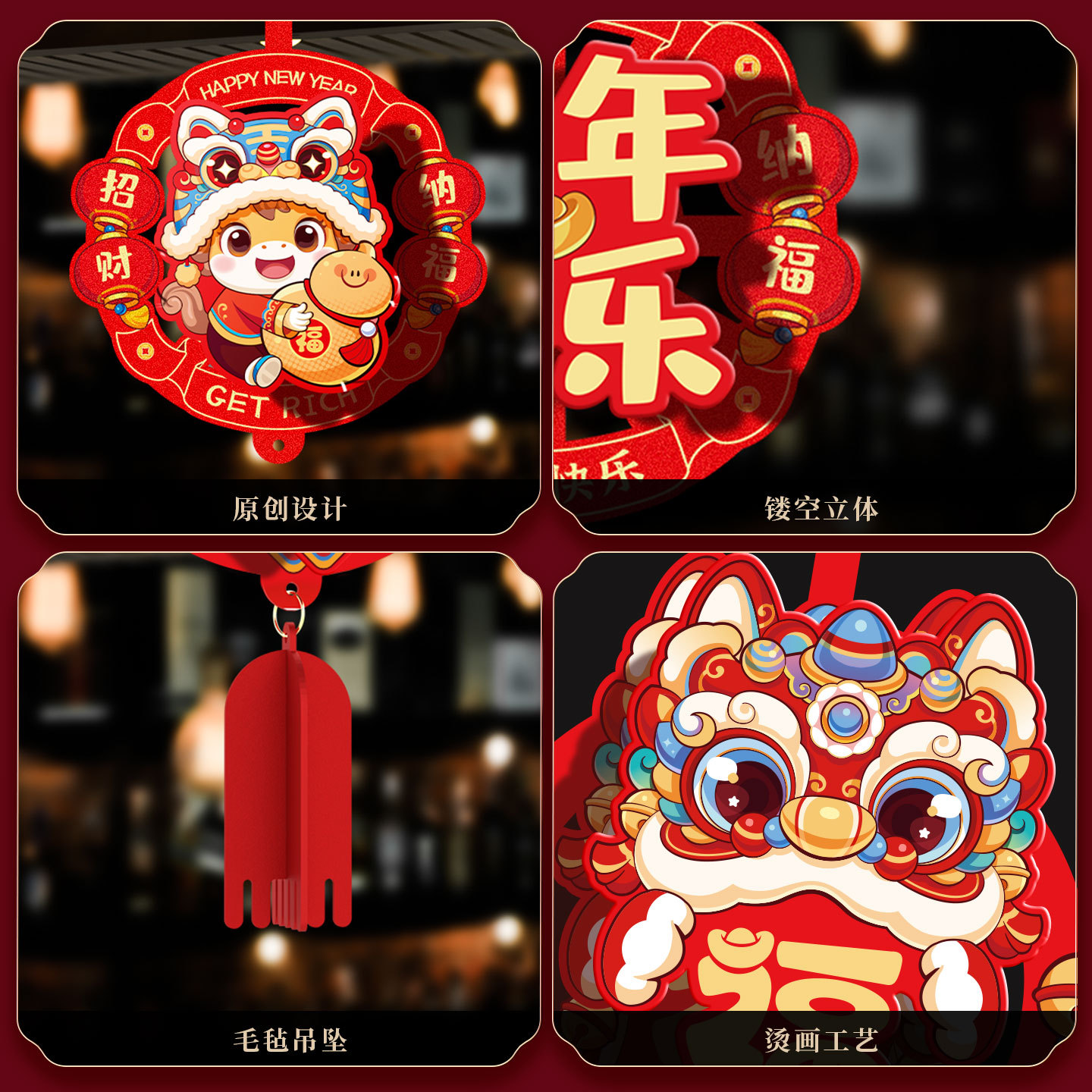 【舞狮送福】毛毡布小挂件(6个) ¥524 9976件可售
