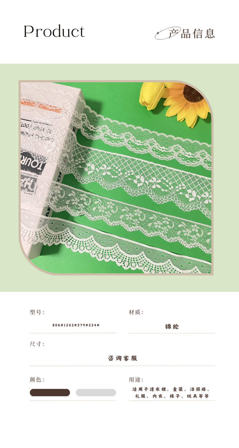 无弹蕾丝锦纶镂空织带手工diy饰品发饰鲜花服装辅料Lace English | 投诉