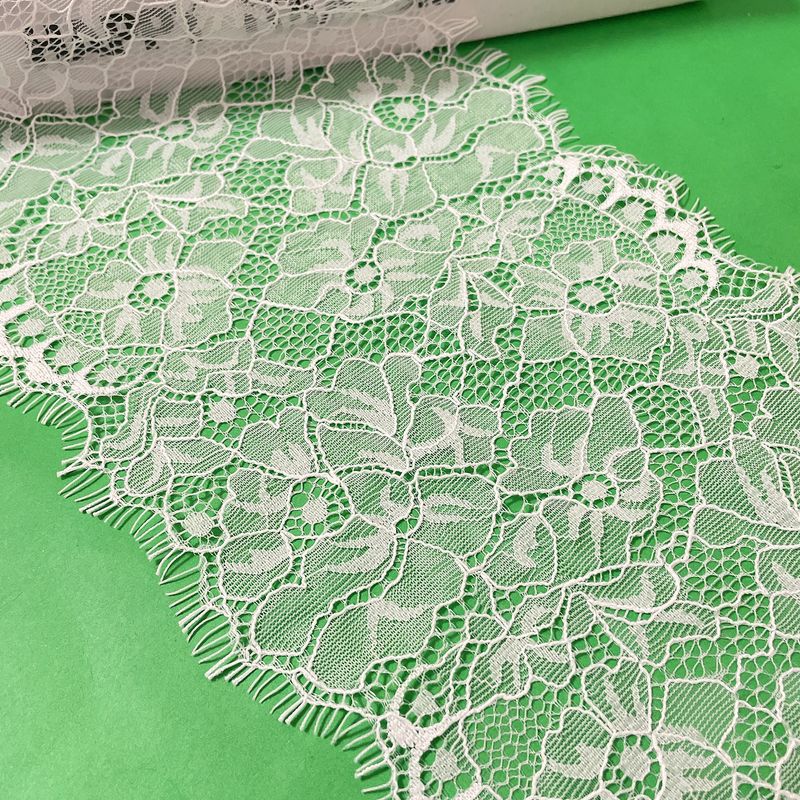 白色双边睫毛蕾丝花边花朵无弹宽边锦纶睫毛花边内衣裙摆配饰辅料