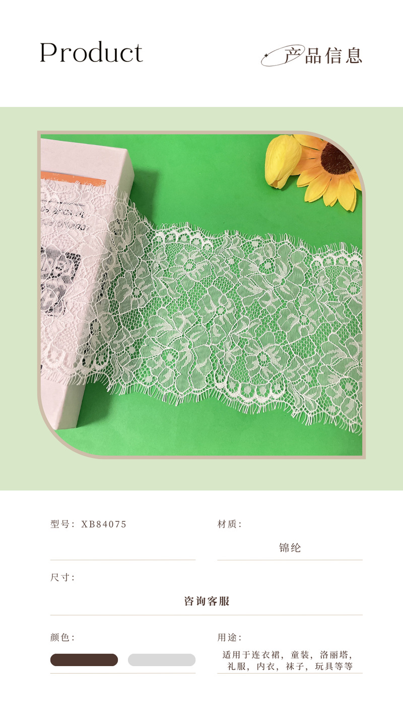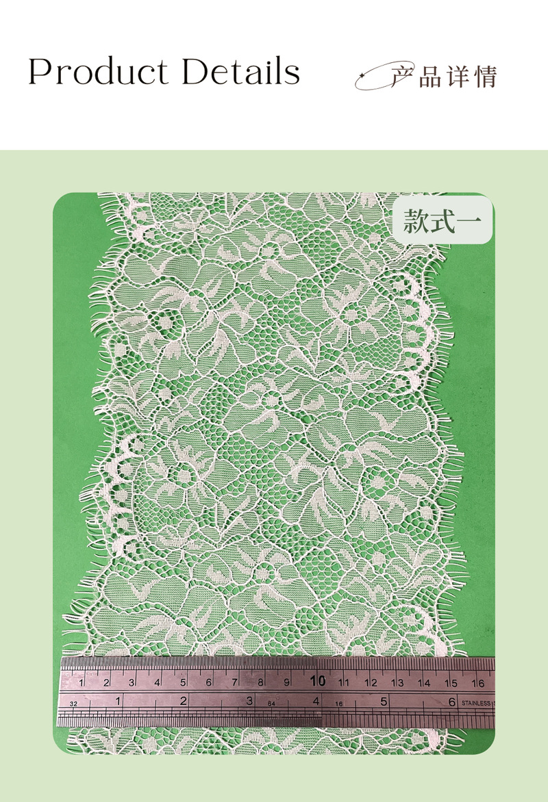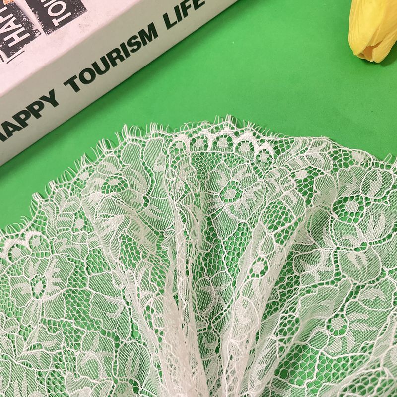 白色双边睫毛蕾丝花边花朵无弹宽边锦纶睫毛花边内衣裙摆配饰辅料 English | 投诉
