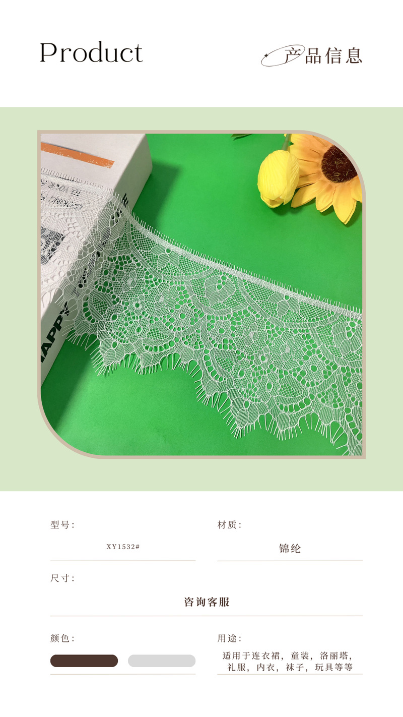 11cm白色睫毛蕾丝花边针织无弹锦纶花边服装配饰辅料 English | 投诉