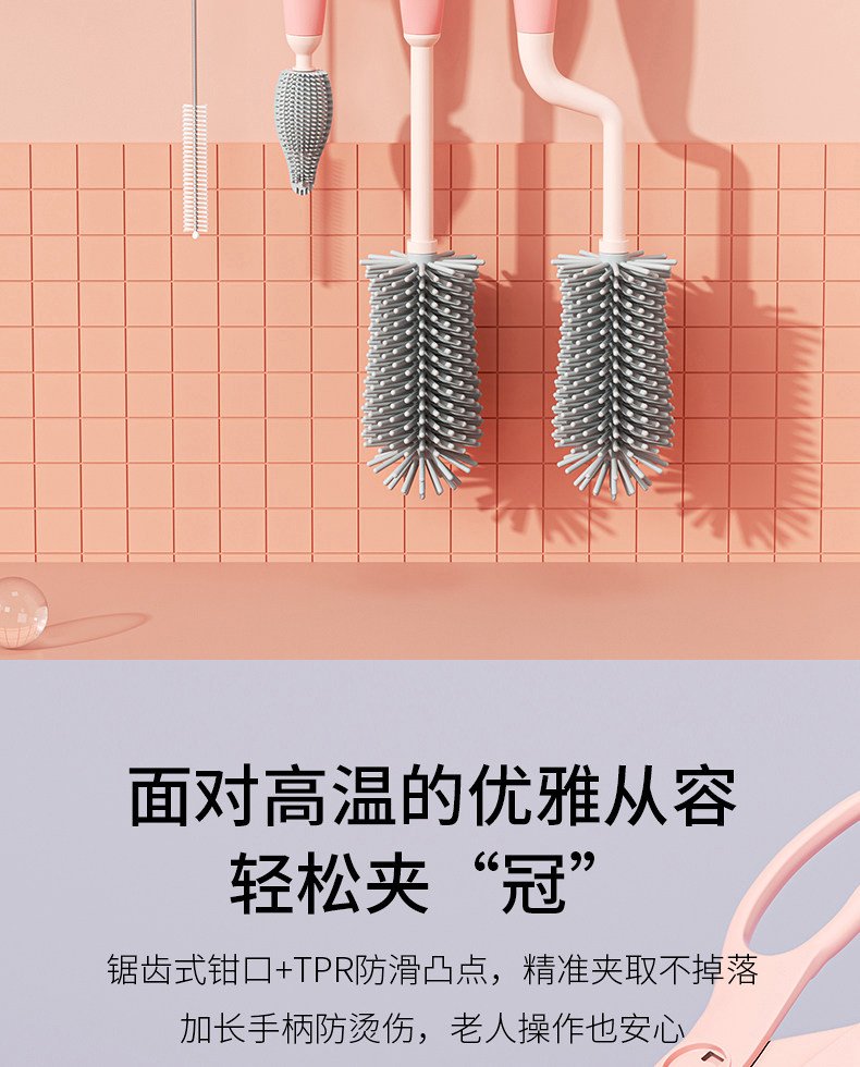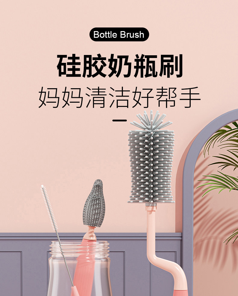 硅胶奶瓶刷360度旋转婴儿奶嘴刷吸管刷洗奶瓶刷子清洗套装清洁9