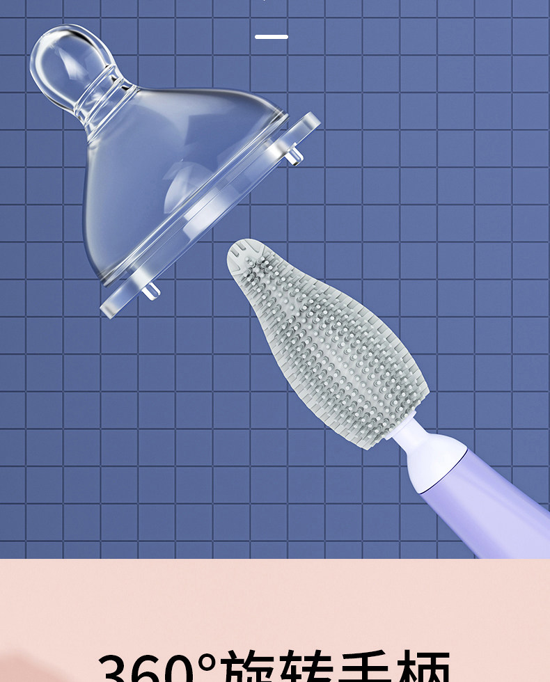 【3件套梦幻紫】旋转奶瓶刷+奶嘴刷+吸管刷 ¥1090 178件可售