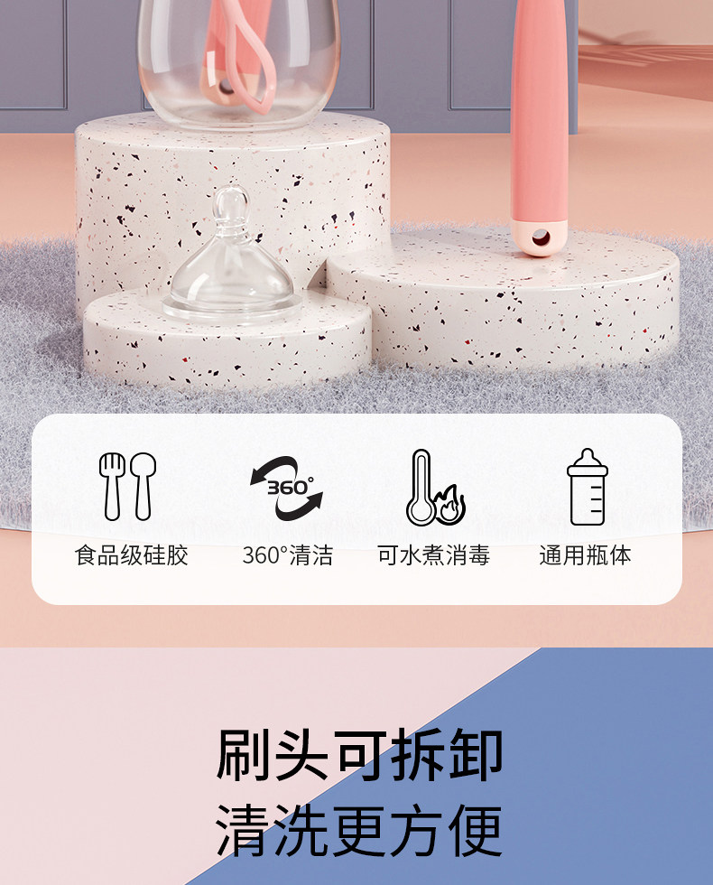 【3件套樱花粉】旋转奶瓶刷+奶嘴刷+吸管刷 ¥1090 97件可售