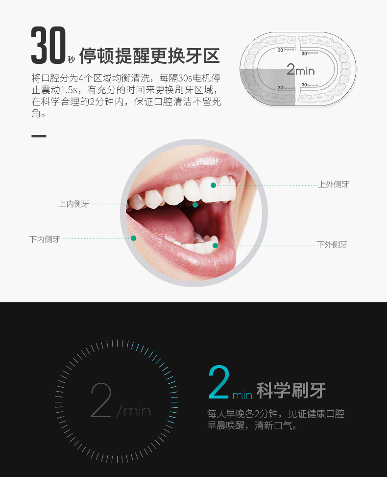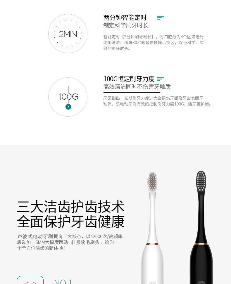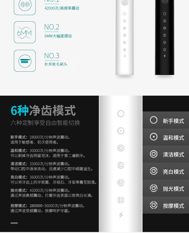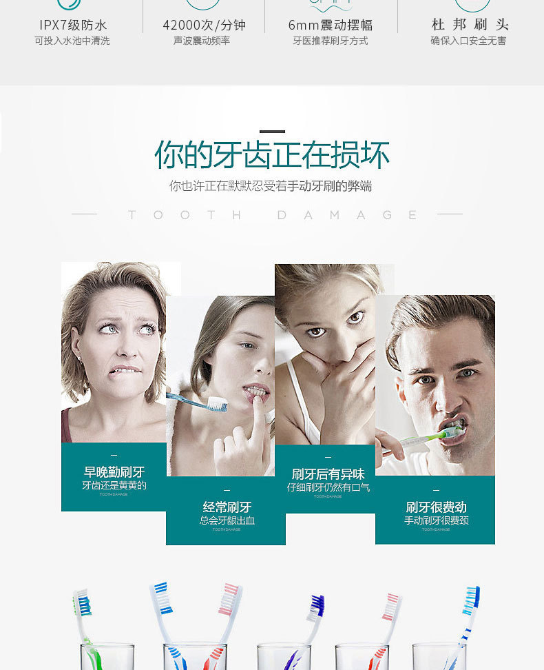 六档智能调节,全自动清洁,软毛呵护牙龈,IPX7级防水安全。