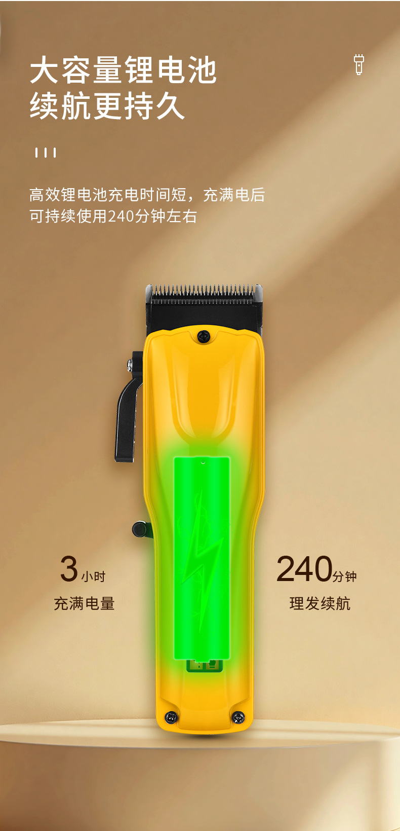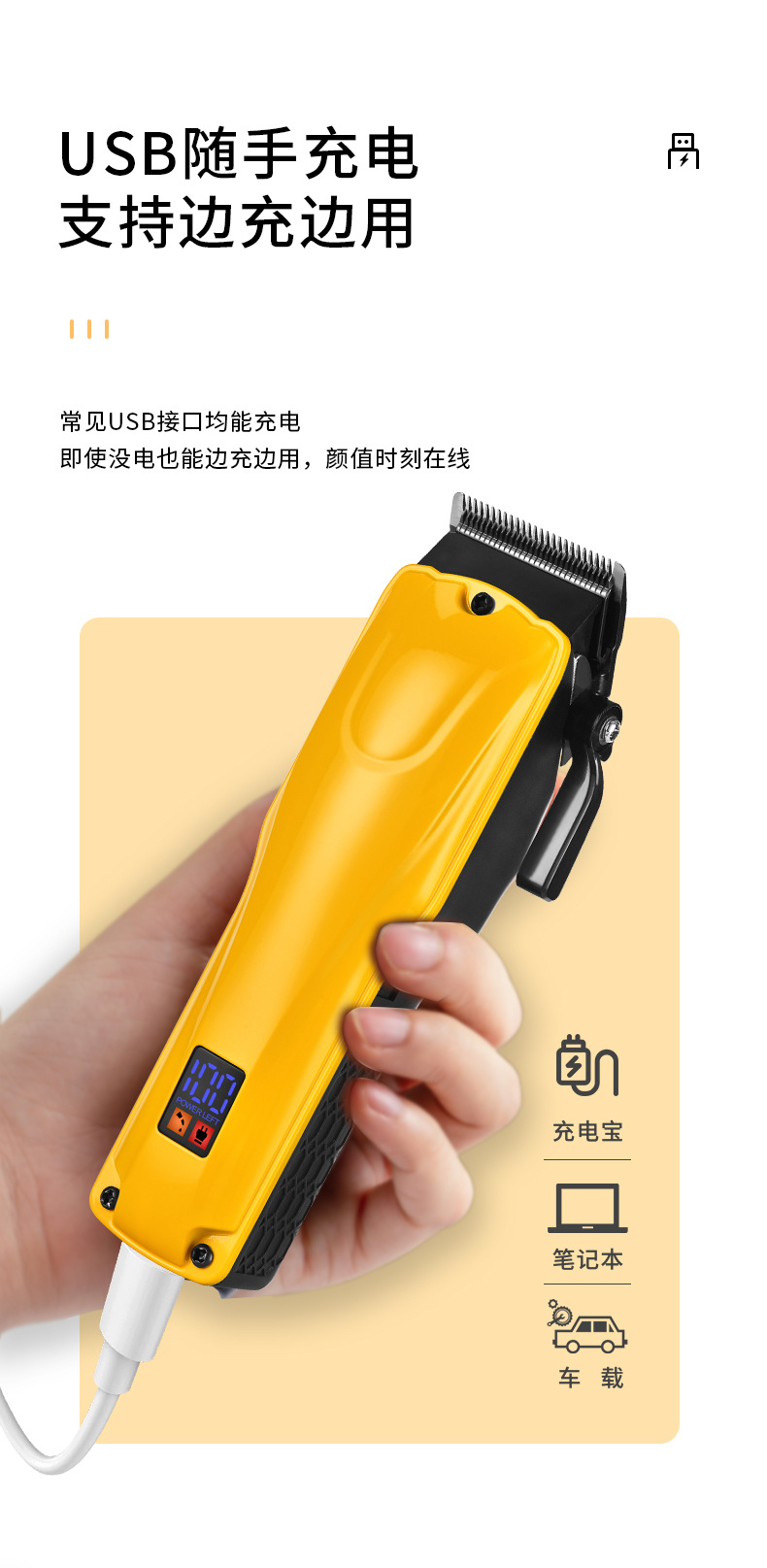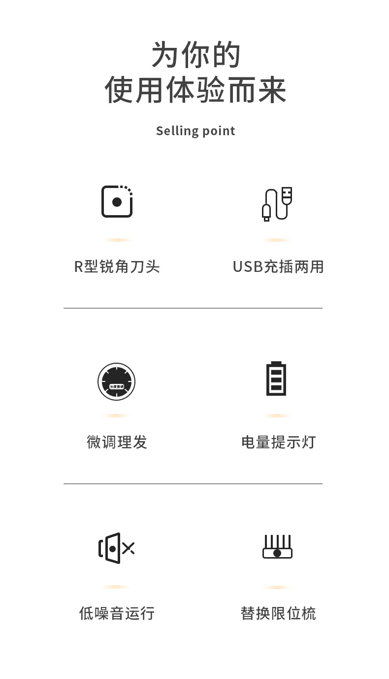 核心卖点:高效马达、防夹发设计、长续航电池。