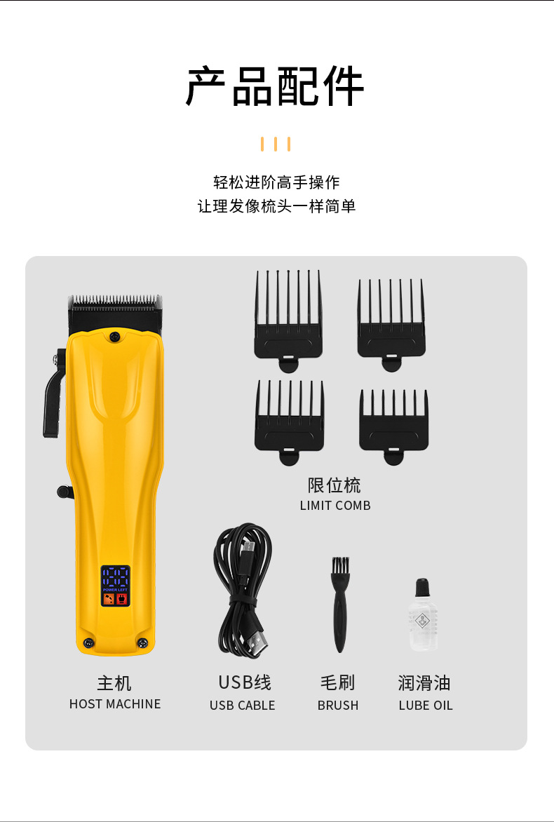 Pearl Max油头雕刻电推剪,LED液晶数显理发神器,精准掌控长度,轻松打造个性油头。