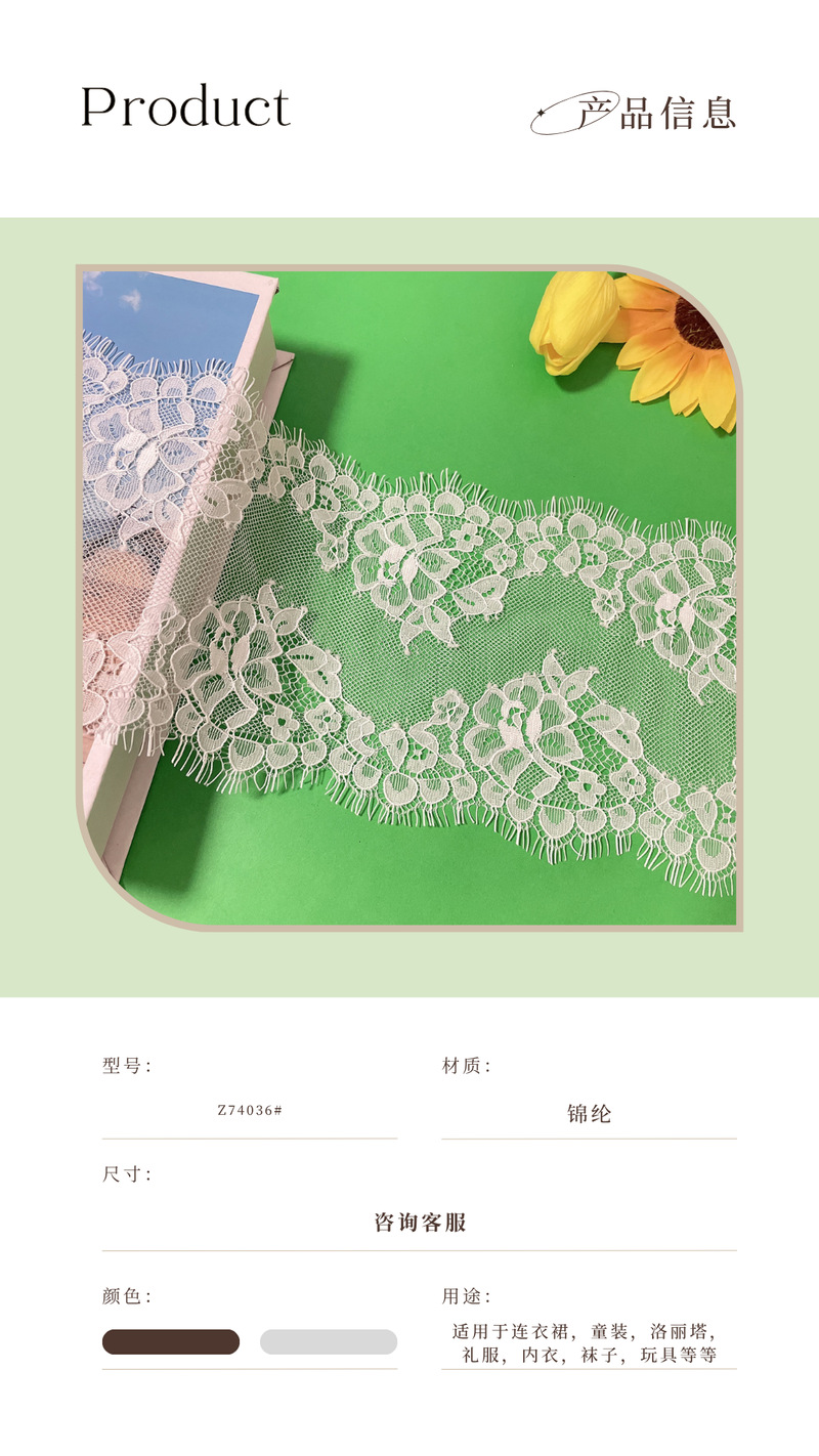 经典睫毛蕾丝花边锦纶无弹镂空花边连衣裙摆婚纱服装辅料工厂 English | 投诉