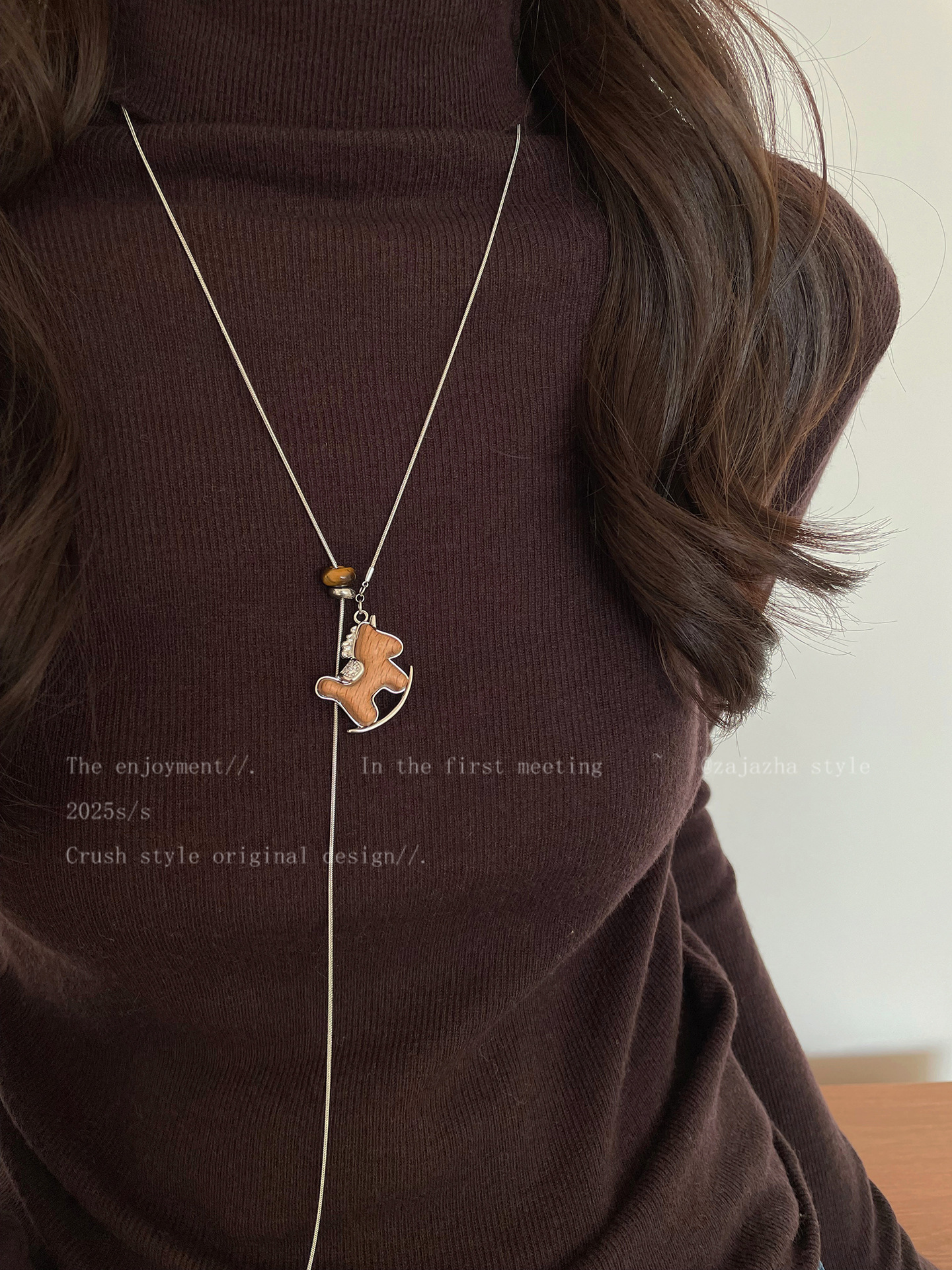 木质小马吊坠项链女2025新款秋冬长款毛衣链复古本命年好运配饰 投诉