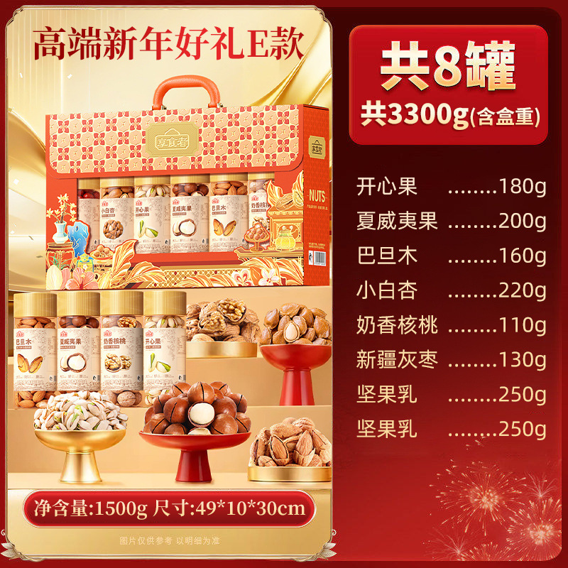 | 坚果礼遇罐装礼盒8罐【E款红】-1420g | ¥5215 | 99831盒可售 |