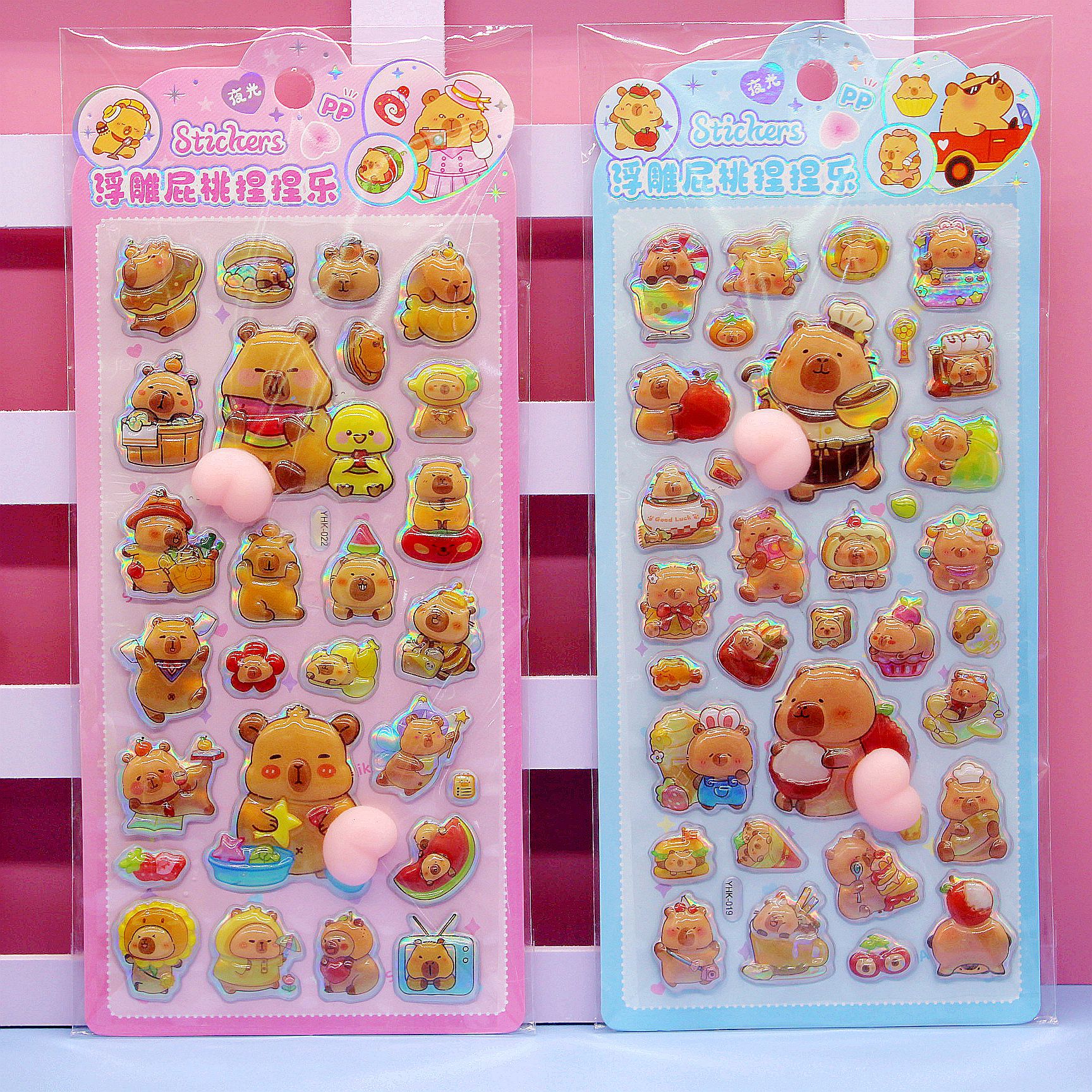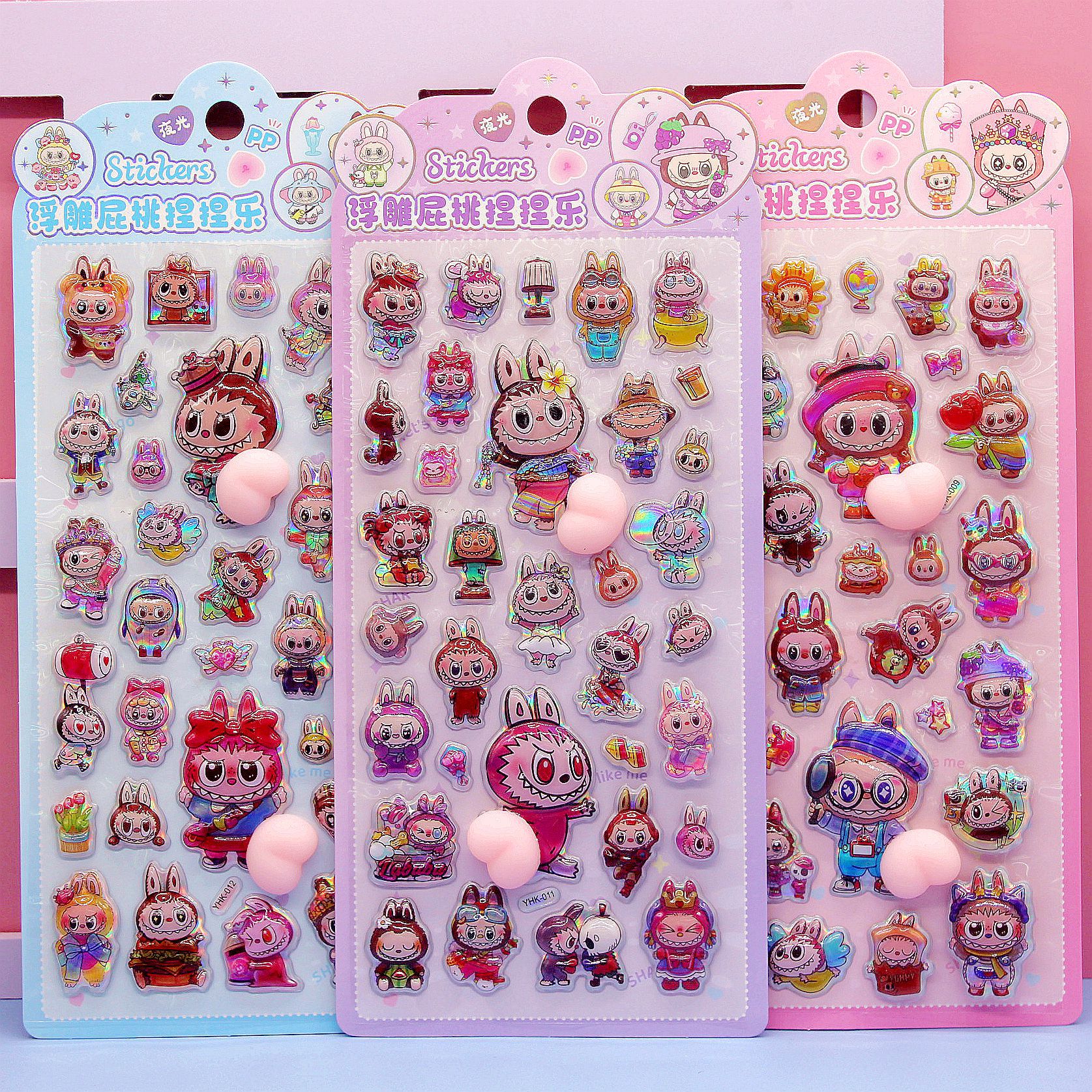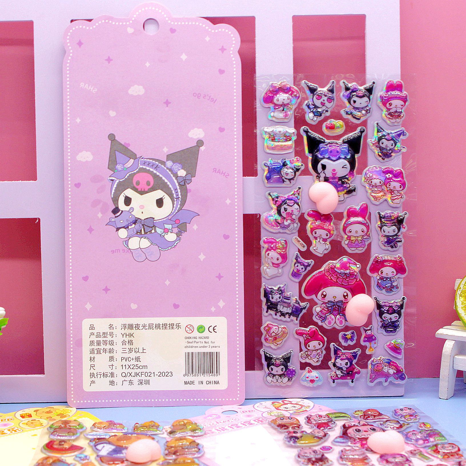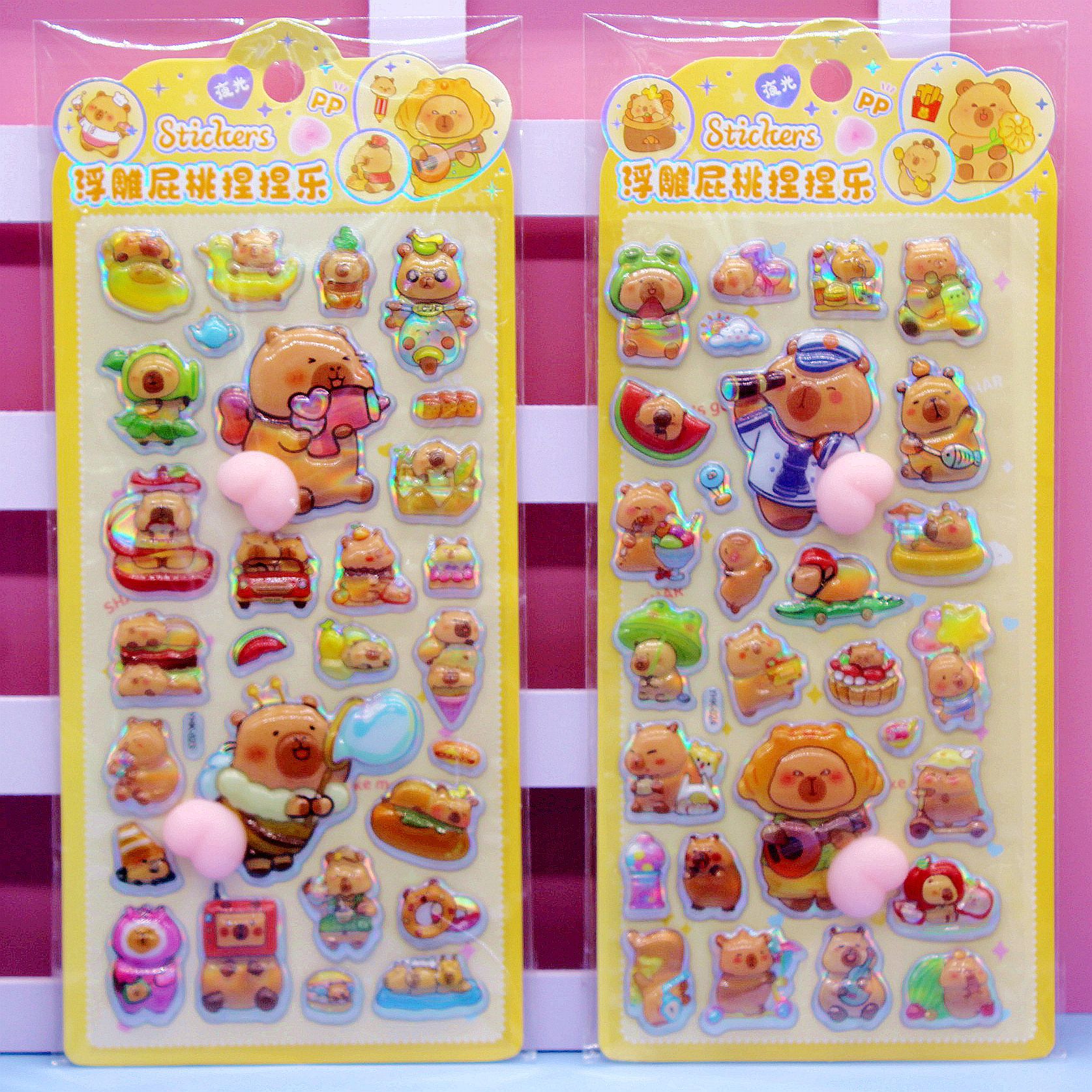 清单:三丽鸥6款拉布布6款卡皮巴拉6款 史迪仔6款吉伊卡哇6款 蜡笔小新6款 每卡2个屁桃