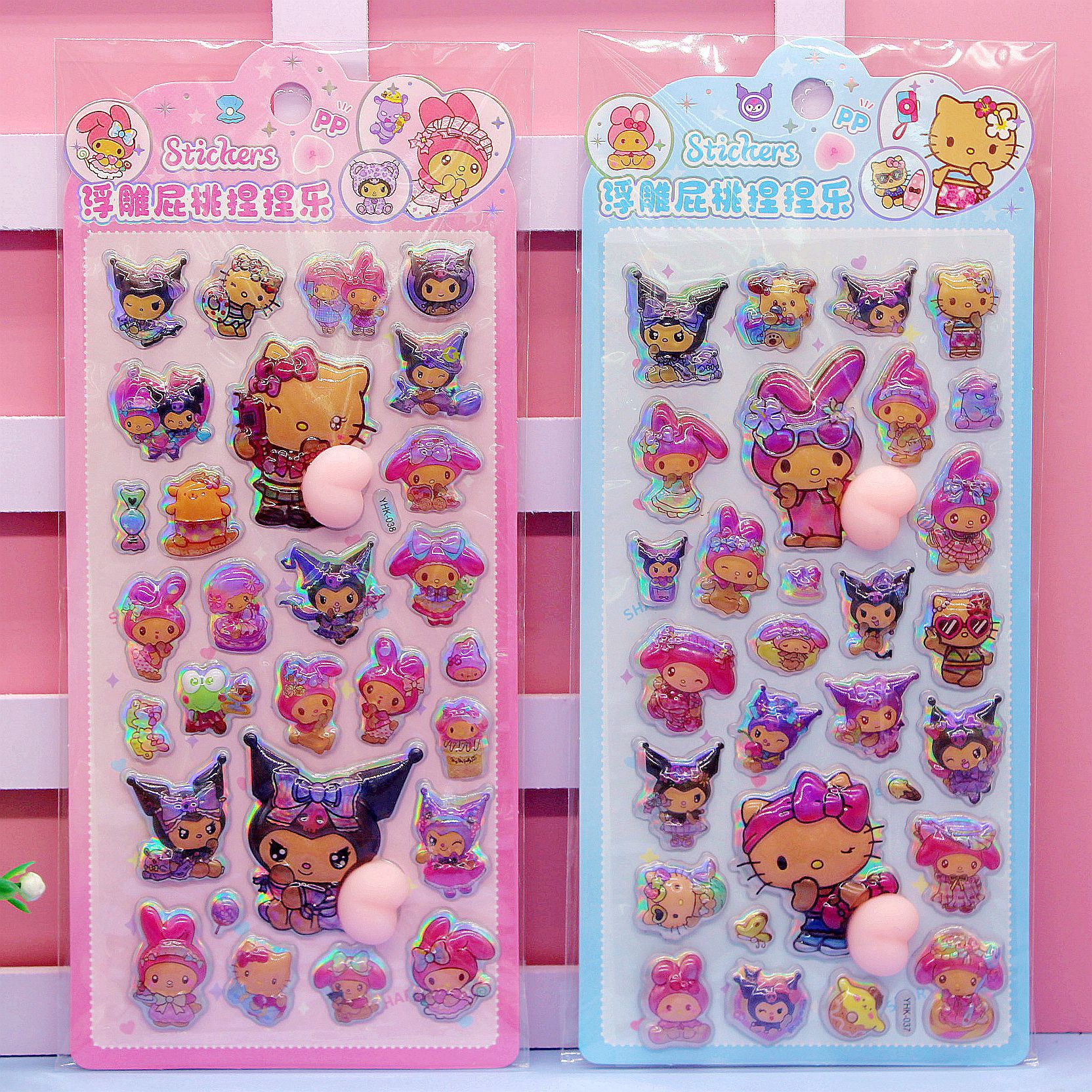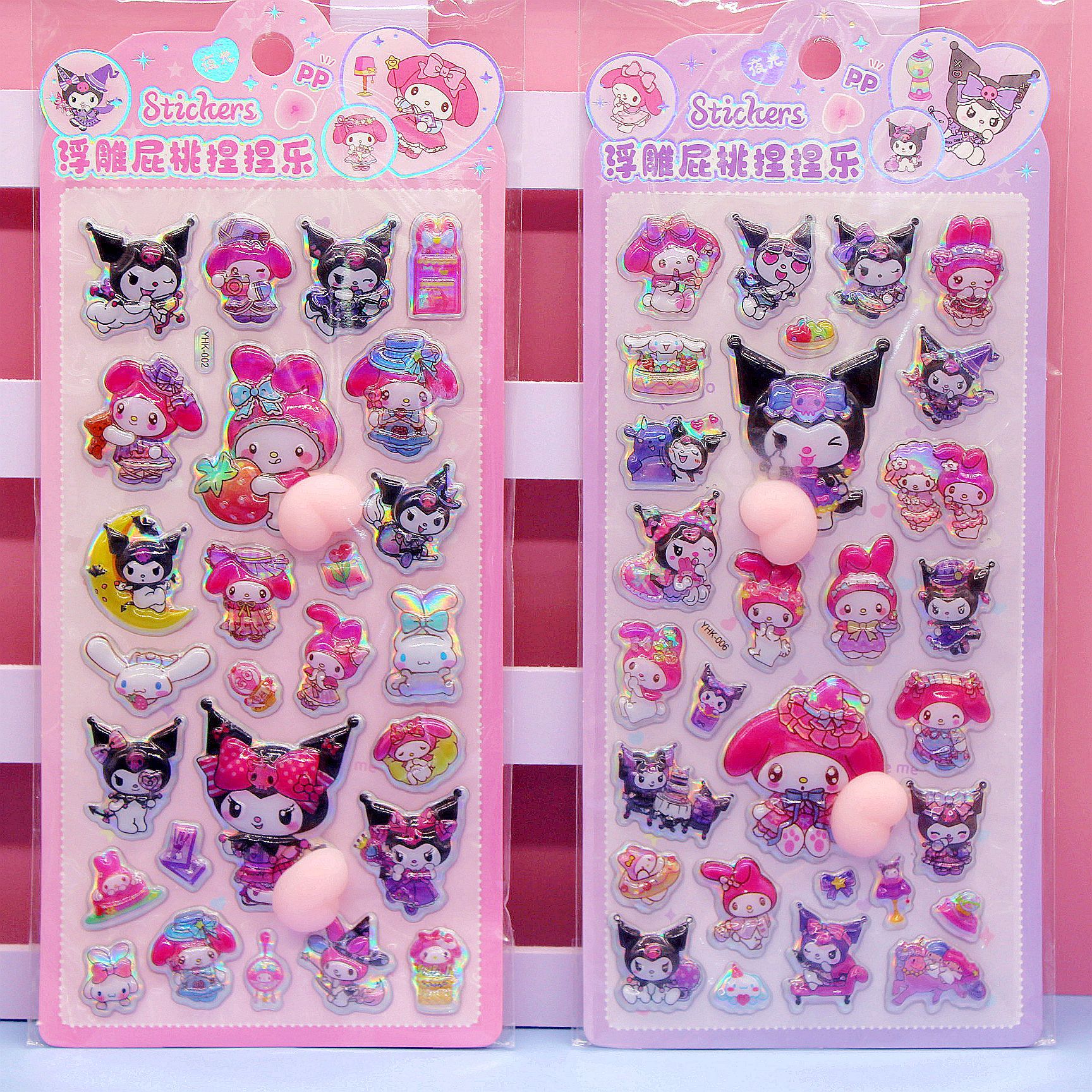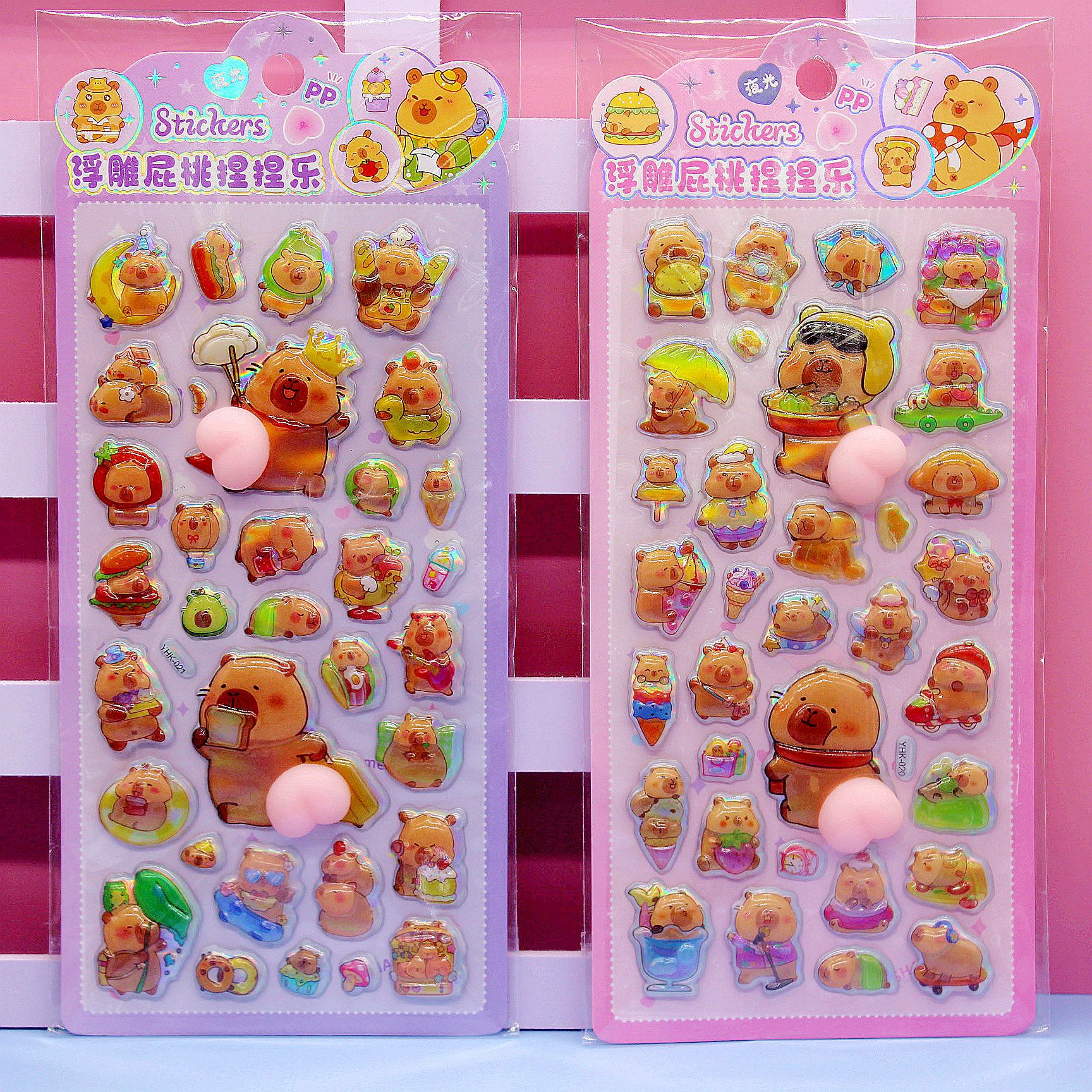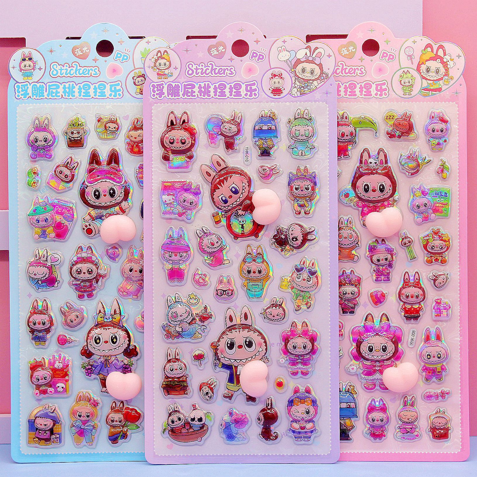 清单:三丽鸥6款拉布布6款卡皮巴拉6款 史迪仔6款吉伊卡哇6款 蜡笔小新6款 每卡2个屁桃