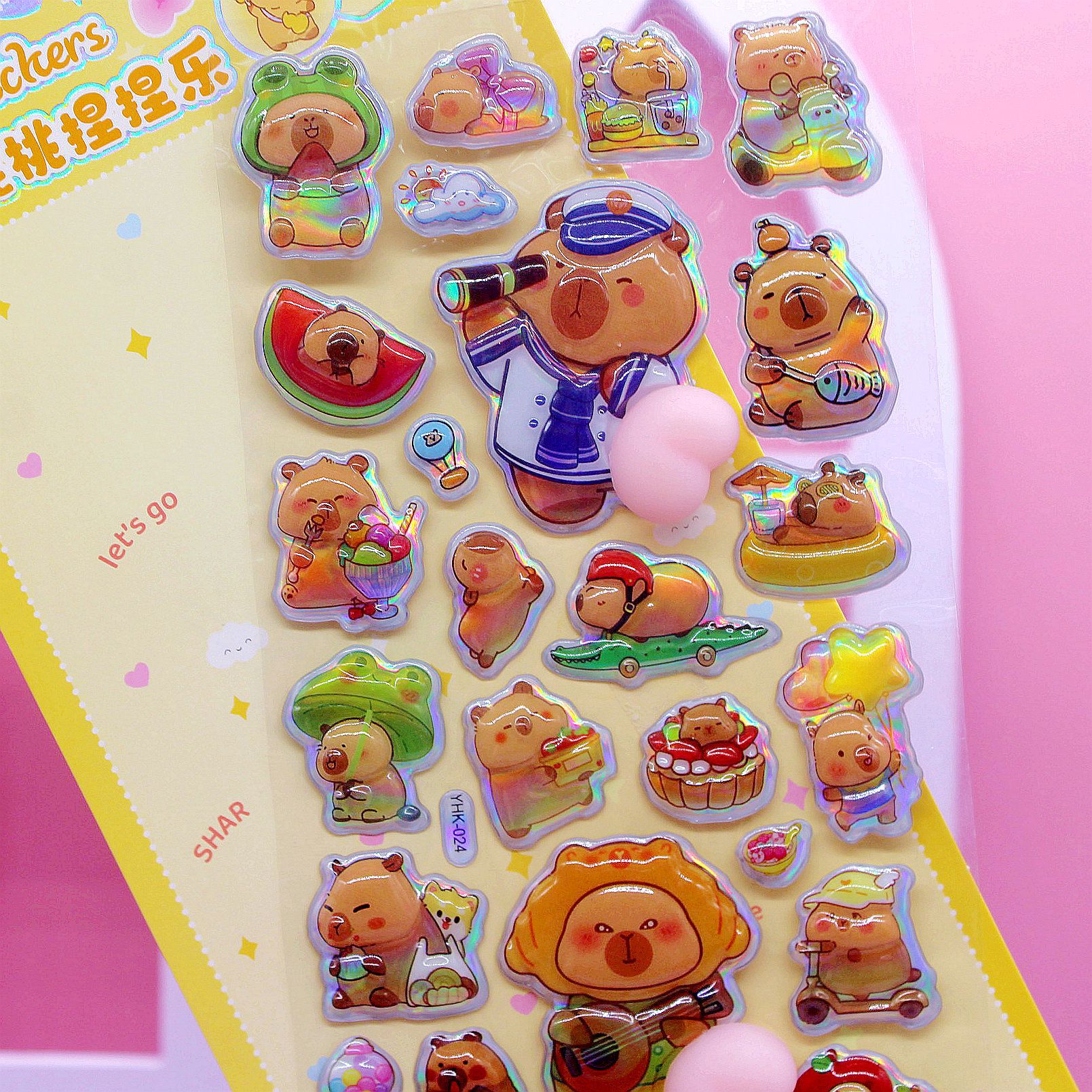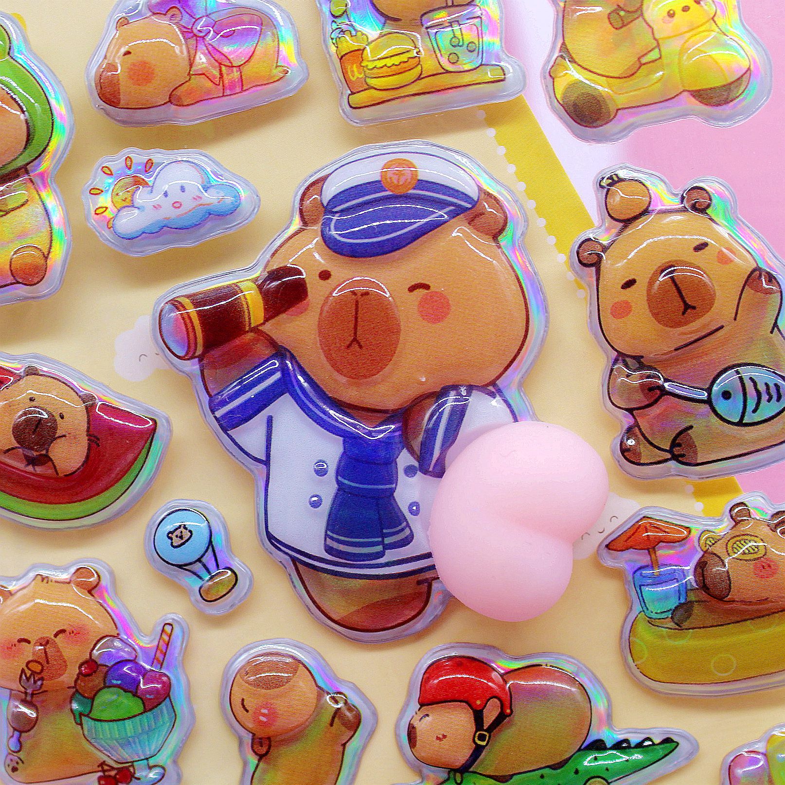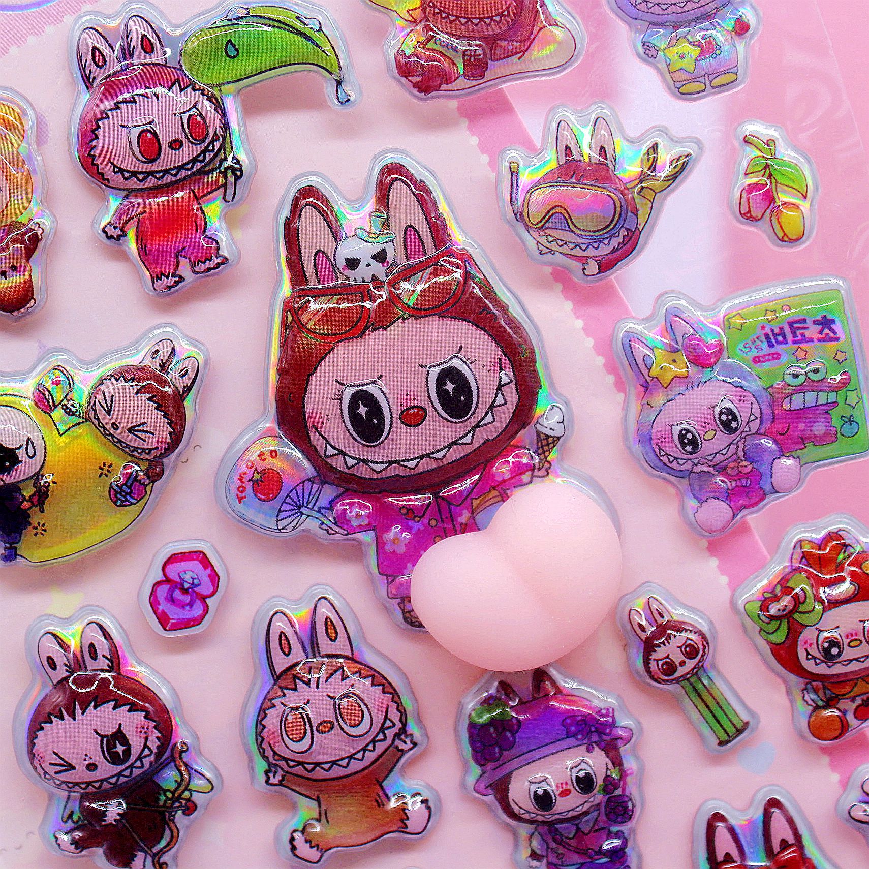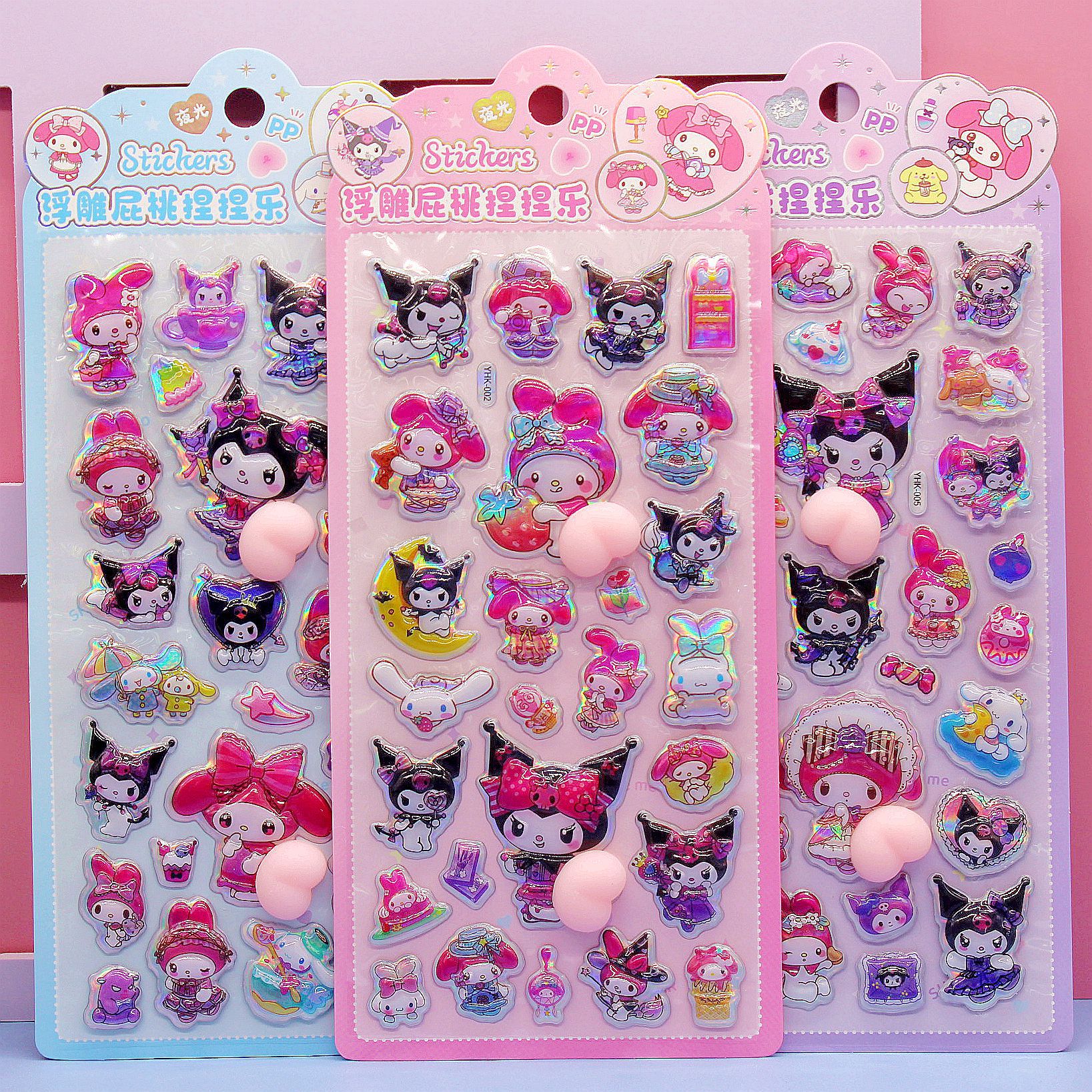 清单:三丽鸥6款拉布布6款卡皮巴拉6款 史迪仔6款吉伊卡哇6款 蜡笔小新6款 每卡2个屁桃