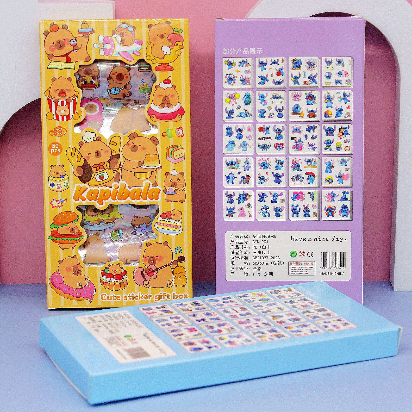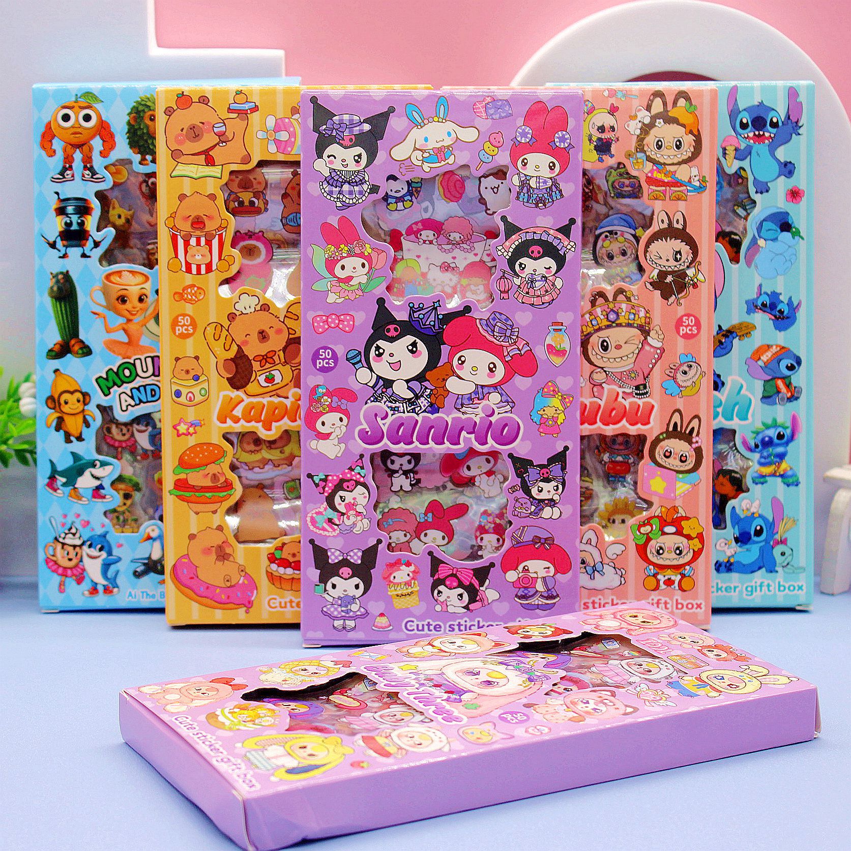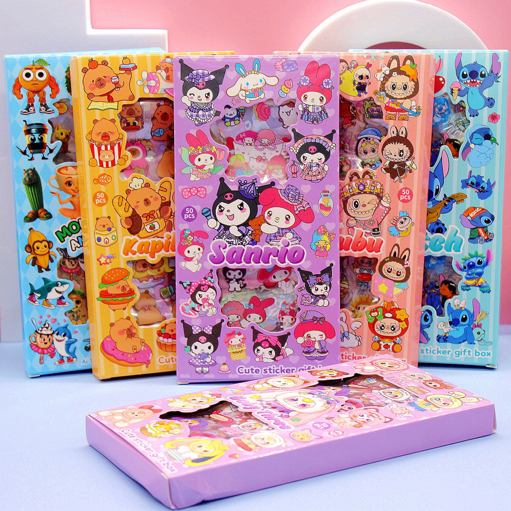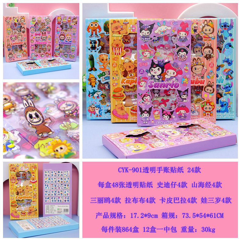 清单:透明贴纸 史迪仔4款 山海经4款三丽鸥4款 拉布布4款 卡皮巴拉4款 娃三岁4款