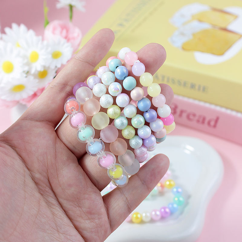 【名称】跨境甜美儿童可爱内彩珠果冻珠磨砂珠手链彩色手串饰品批发厂家
