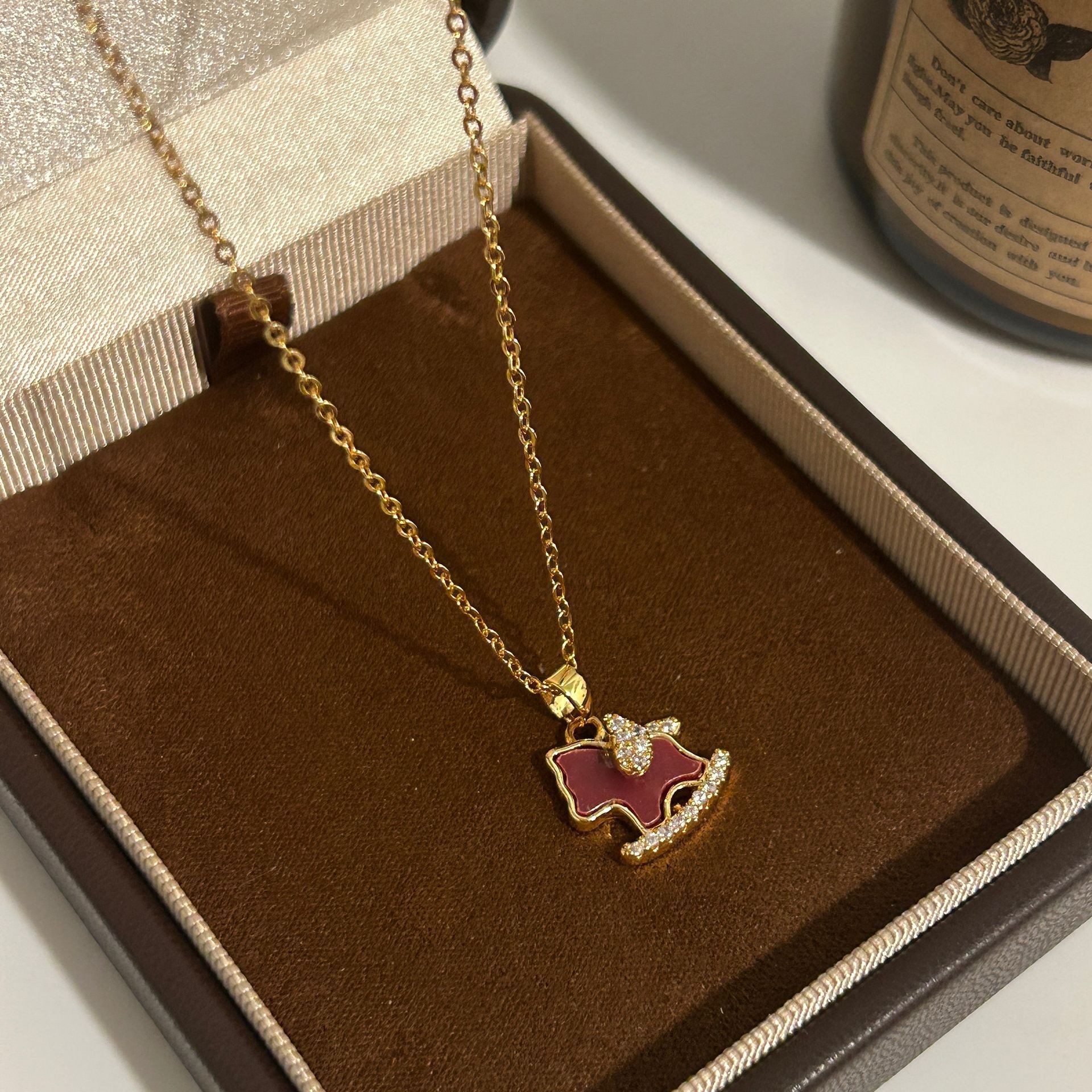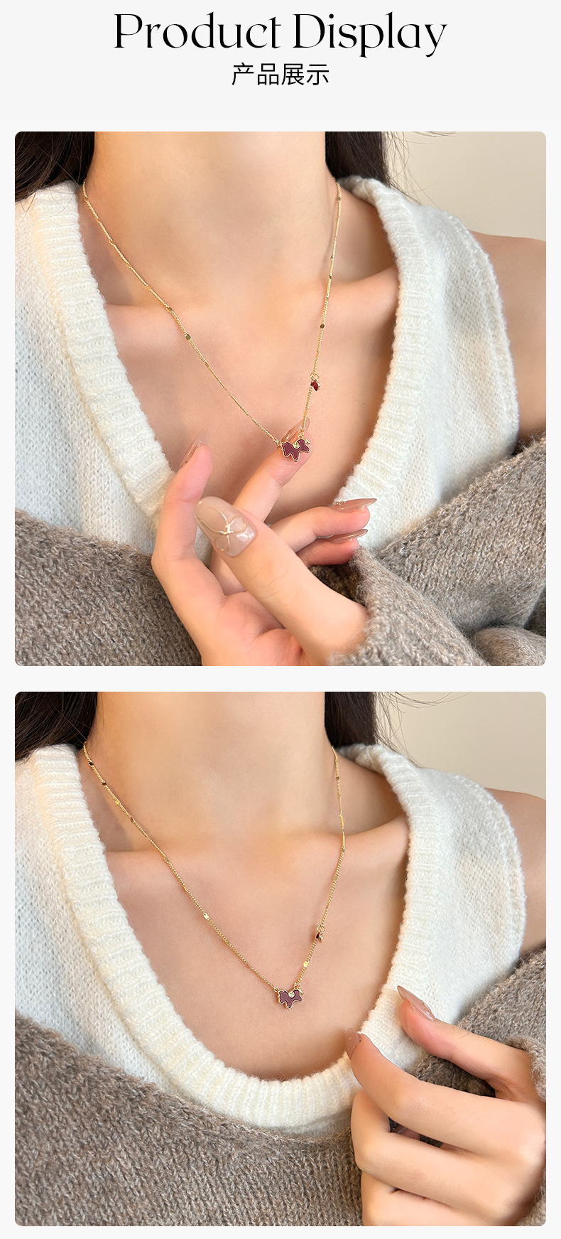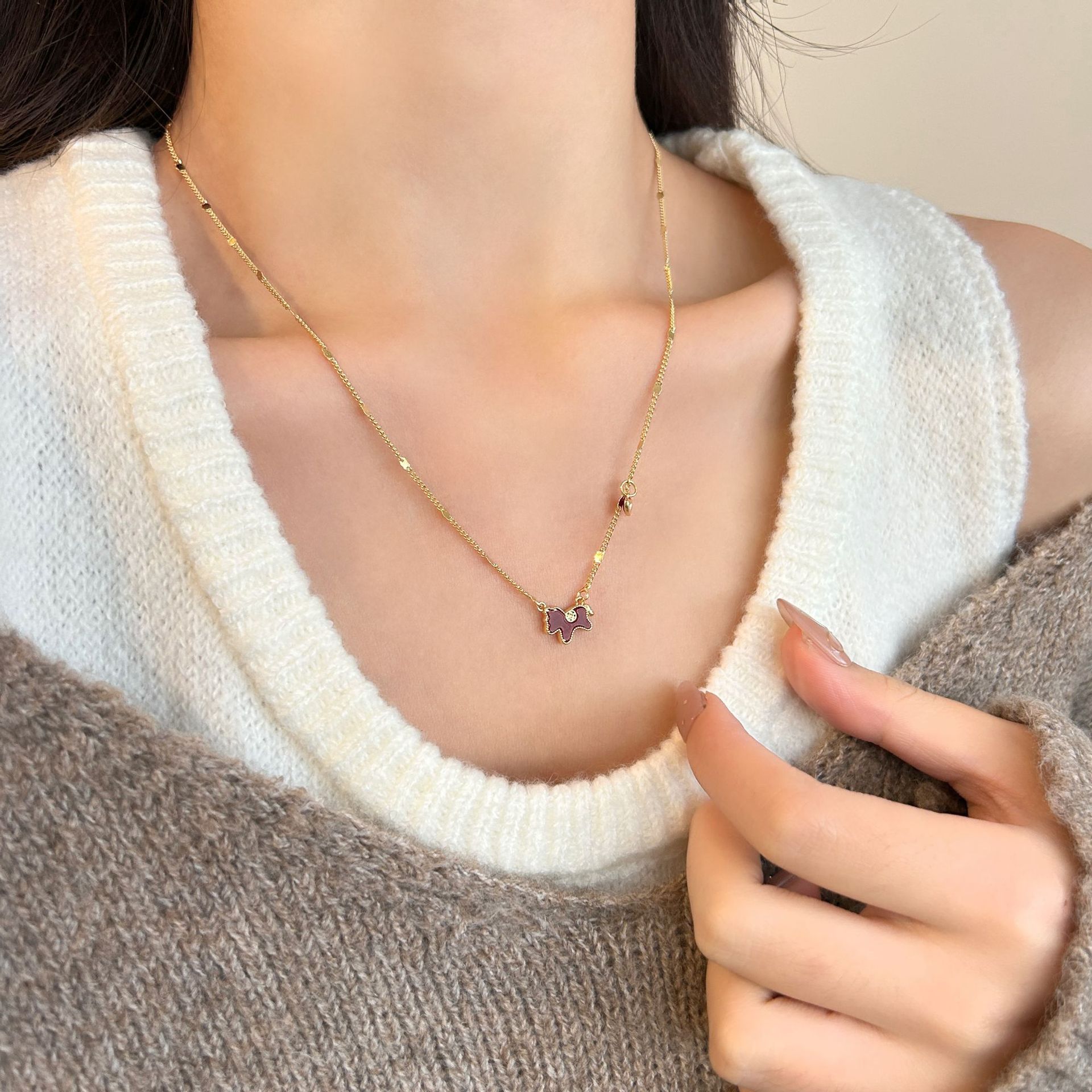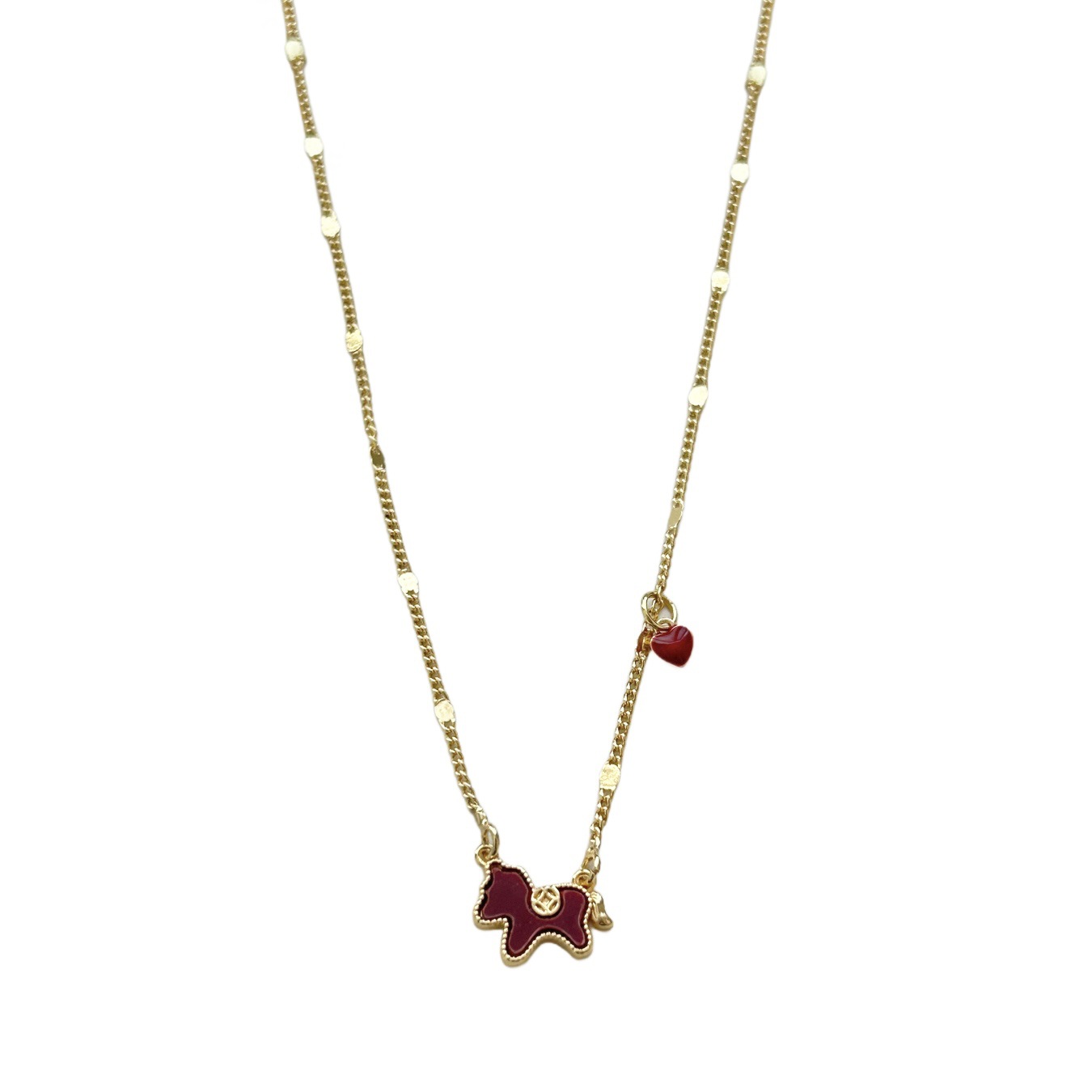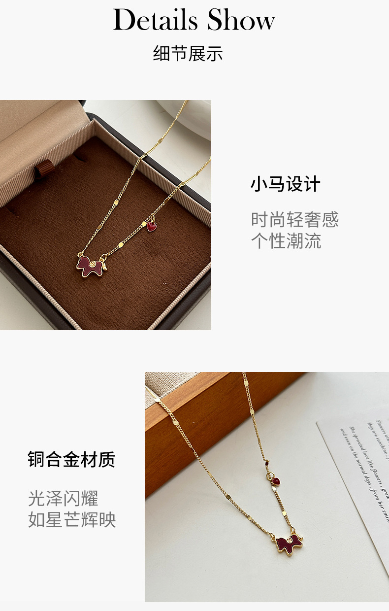2026新款生肖马上有钱吊坠小马项链女款红色爱心锁骨链轻奢毛衣链 投诉