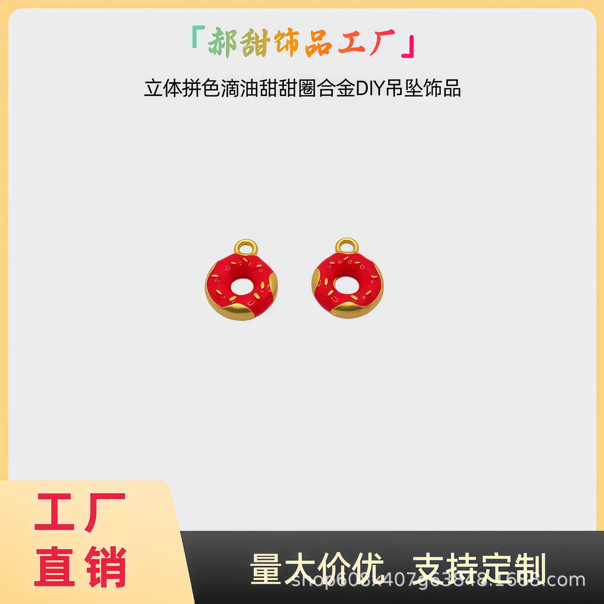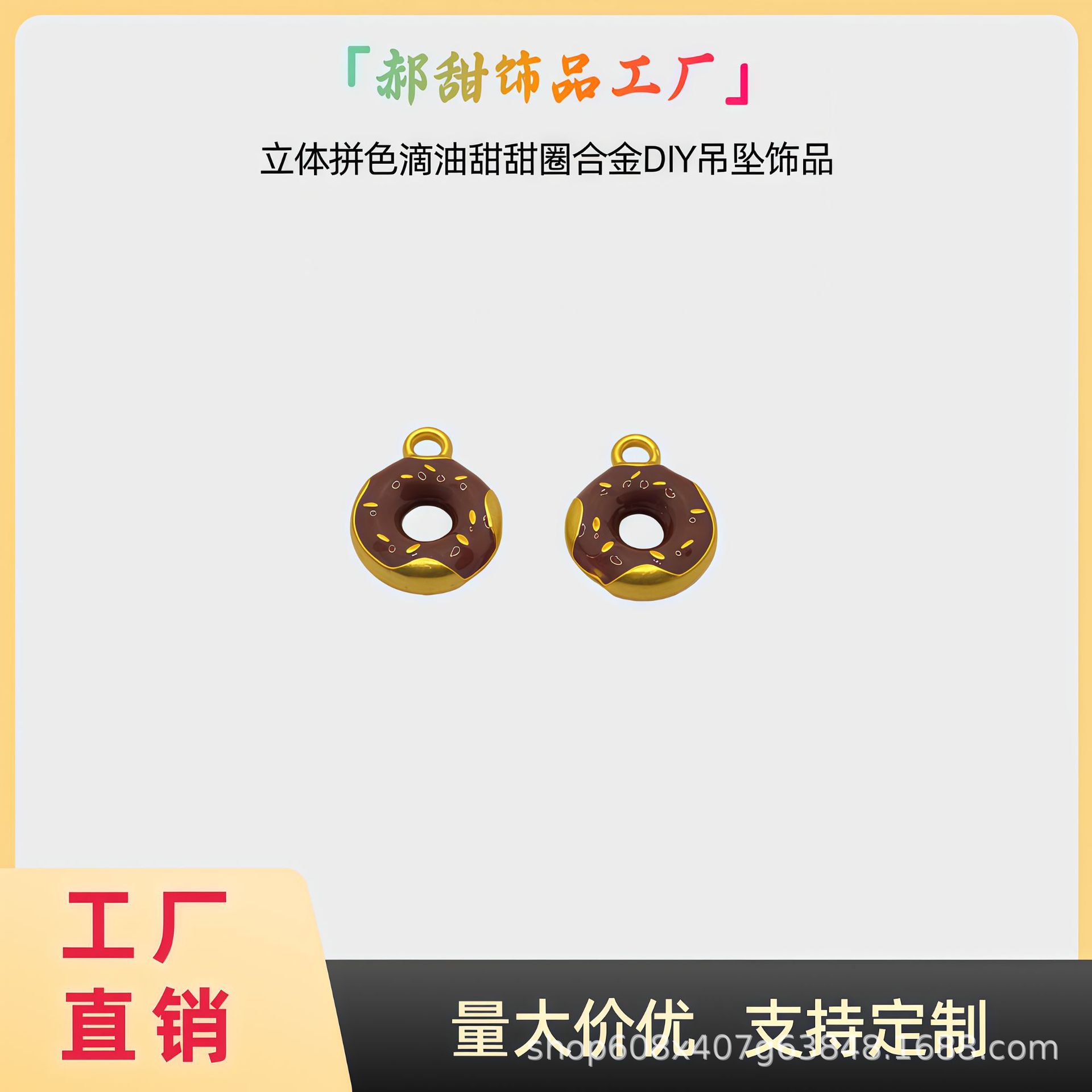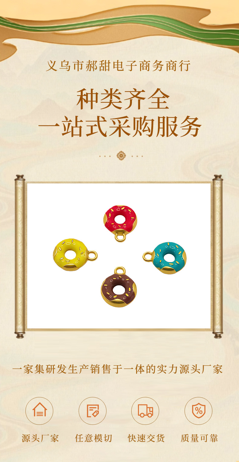 材质: 锌合金 处理工艺: 滴油 流行元素: 多巴胺甜甜圈 种类: 吊坠 品牌: 其他 产地: 义乌 货号: N1613 颜色: 红甜甜圈,蓝甜甜圈,黄甜甜圈,巧克力甜甜 型号: 巧克力 是否跨境出口专供货源: 否 主要下游平台: 淘宝,京东,ebay,亚马逊,wish, 有可授权的自有品牌: 否 上市年份/季节: 2025夏季 流行元素分类: 水果/食品