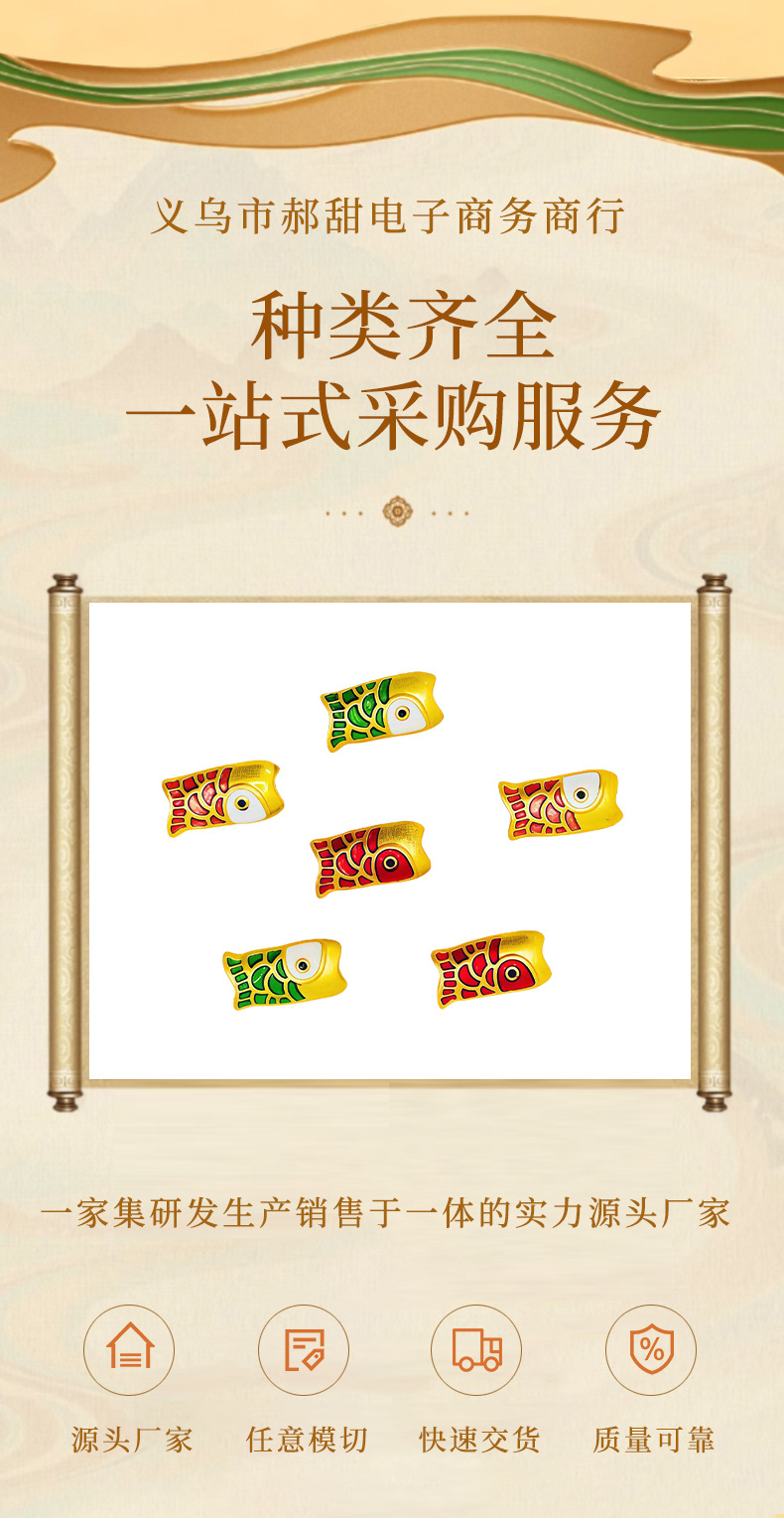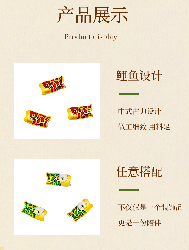 国风哑金保色滴油穿孔锦鲤隔珠DIY手链项链隔珠饰品配件 English | 投诉