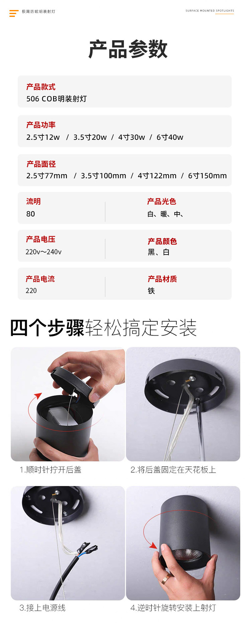 | 6寸 40W白壳 | ¥5438 | 999个可售 |