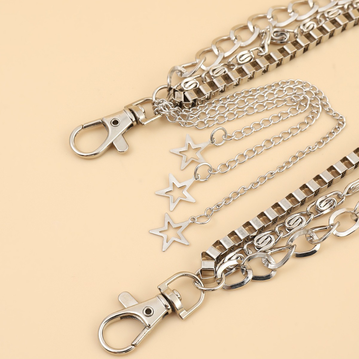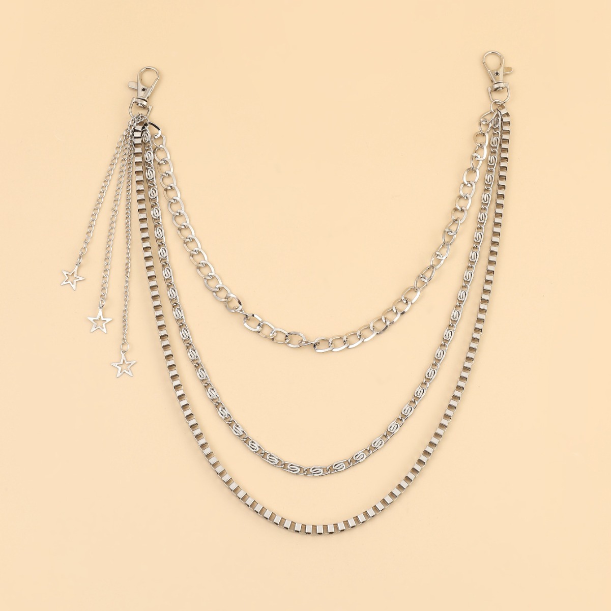 新款金属三层组合复古朋克嘻哈裤链 装饰裤链女士星星腰链嘻哈潮 English | 投诉