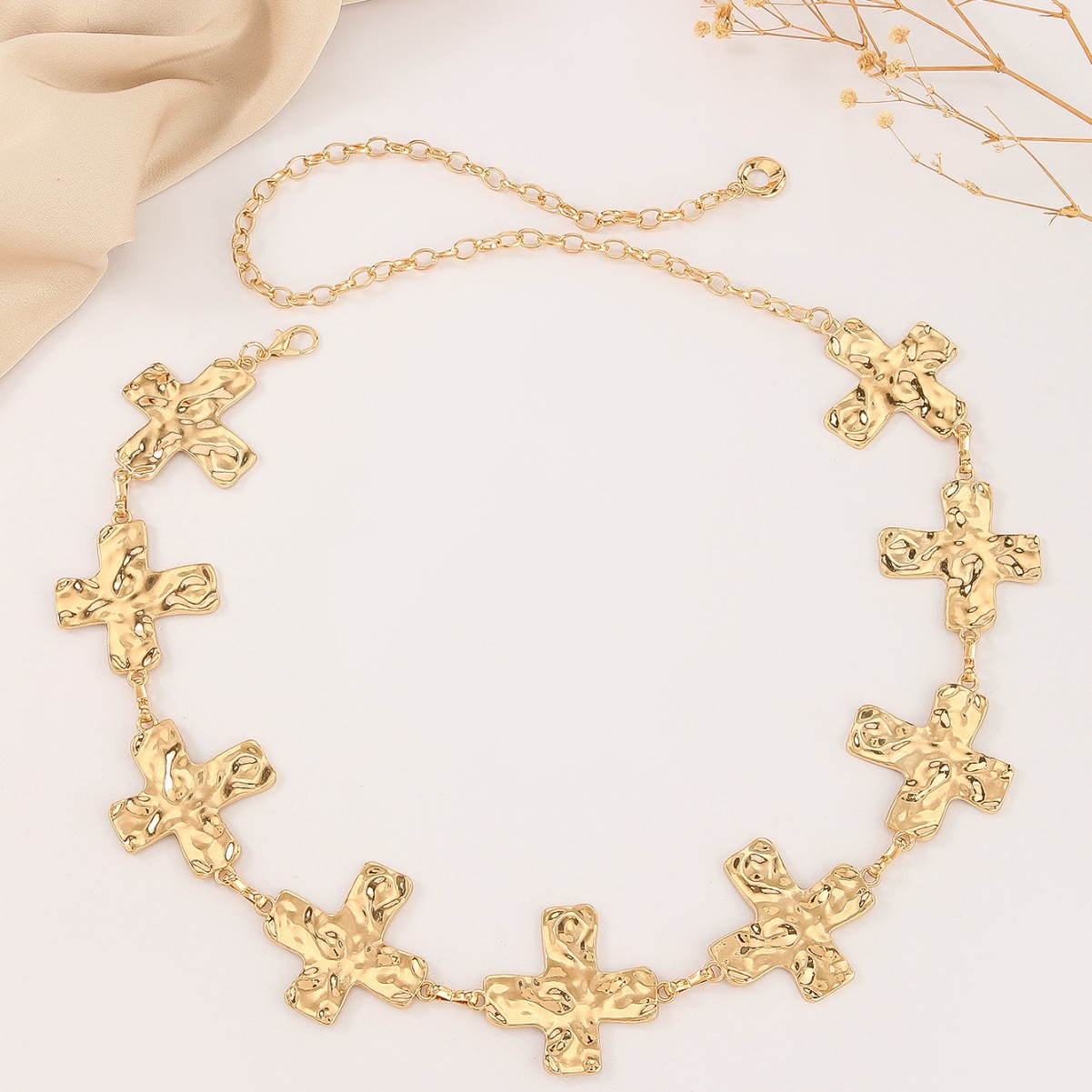 欧美跨境饰品性感大十字架流苏身体链简约双层金属时尚腰链女款 English | 投诉