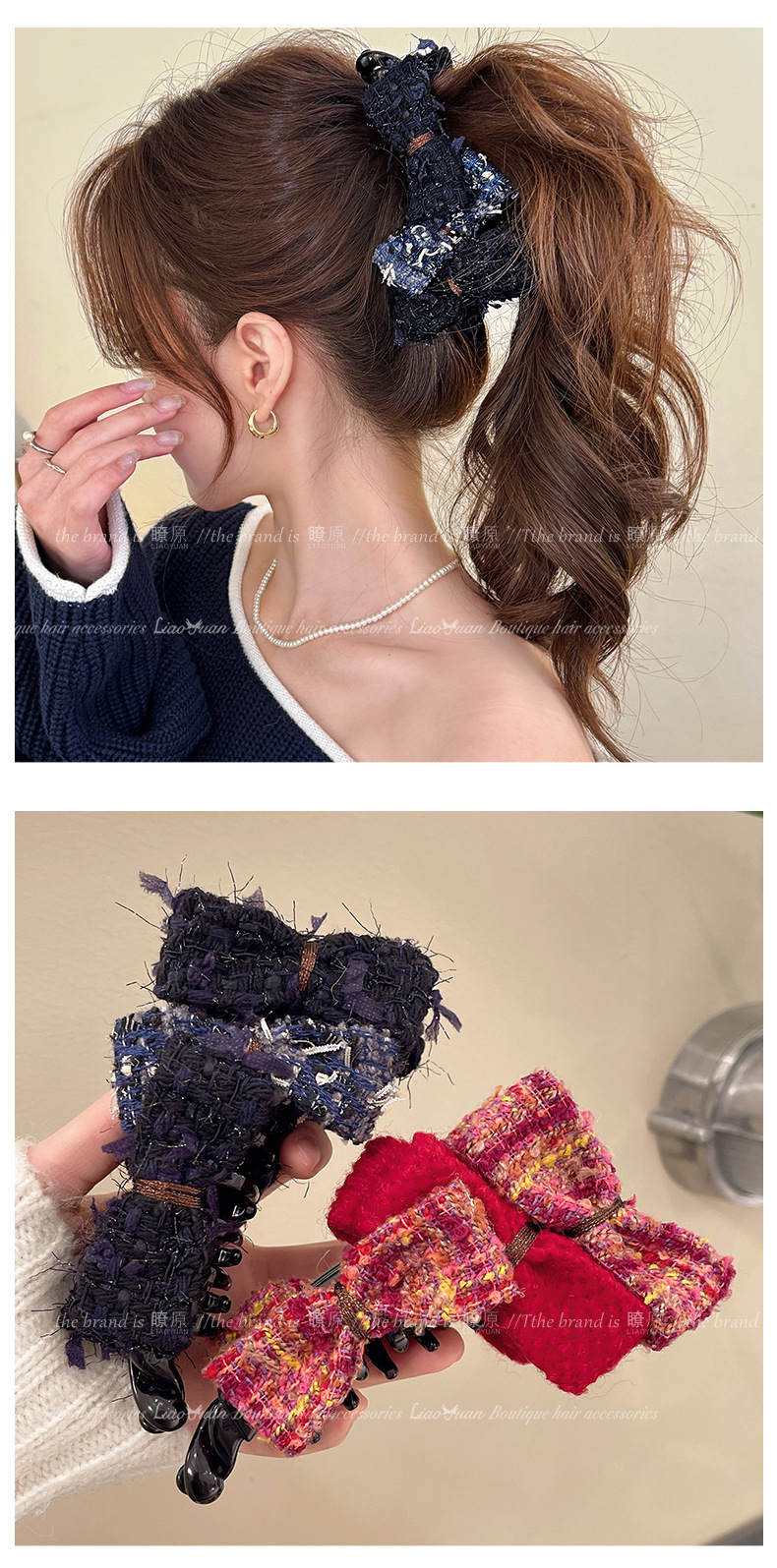 法式小香风蝴蝶结香蕉夹女2025新款高马尾抓夹百搭时尚洋气发饰品 投诉