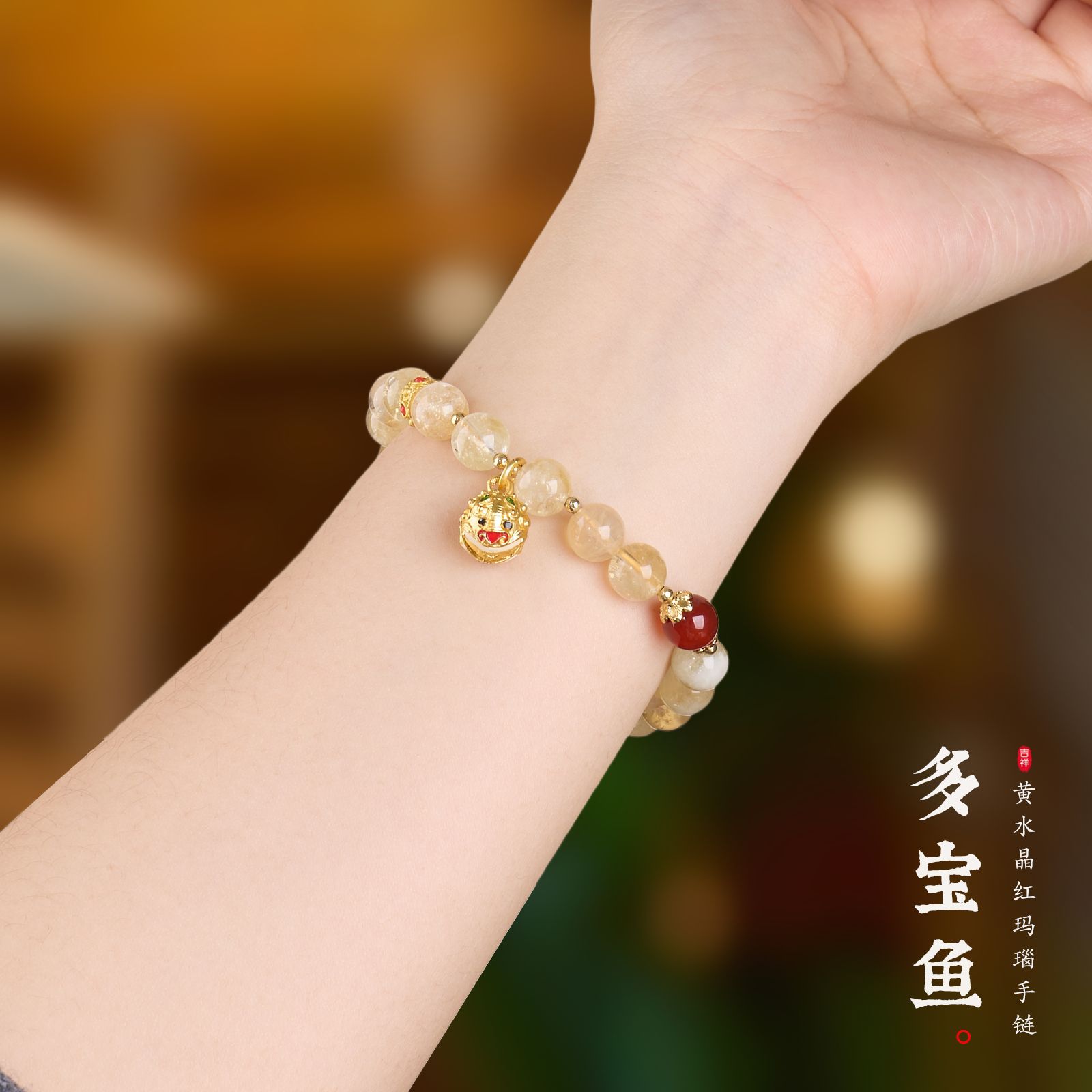 |名称|8MM 黄水晶 多宝鱼 红玛瑙手链