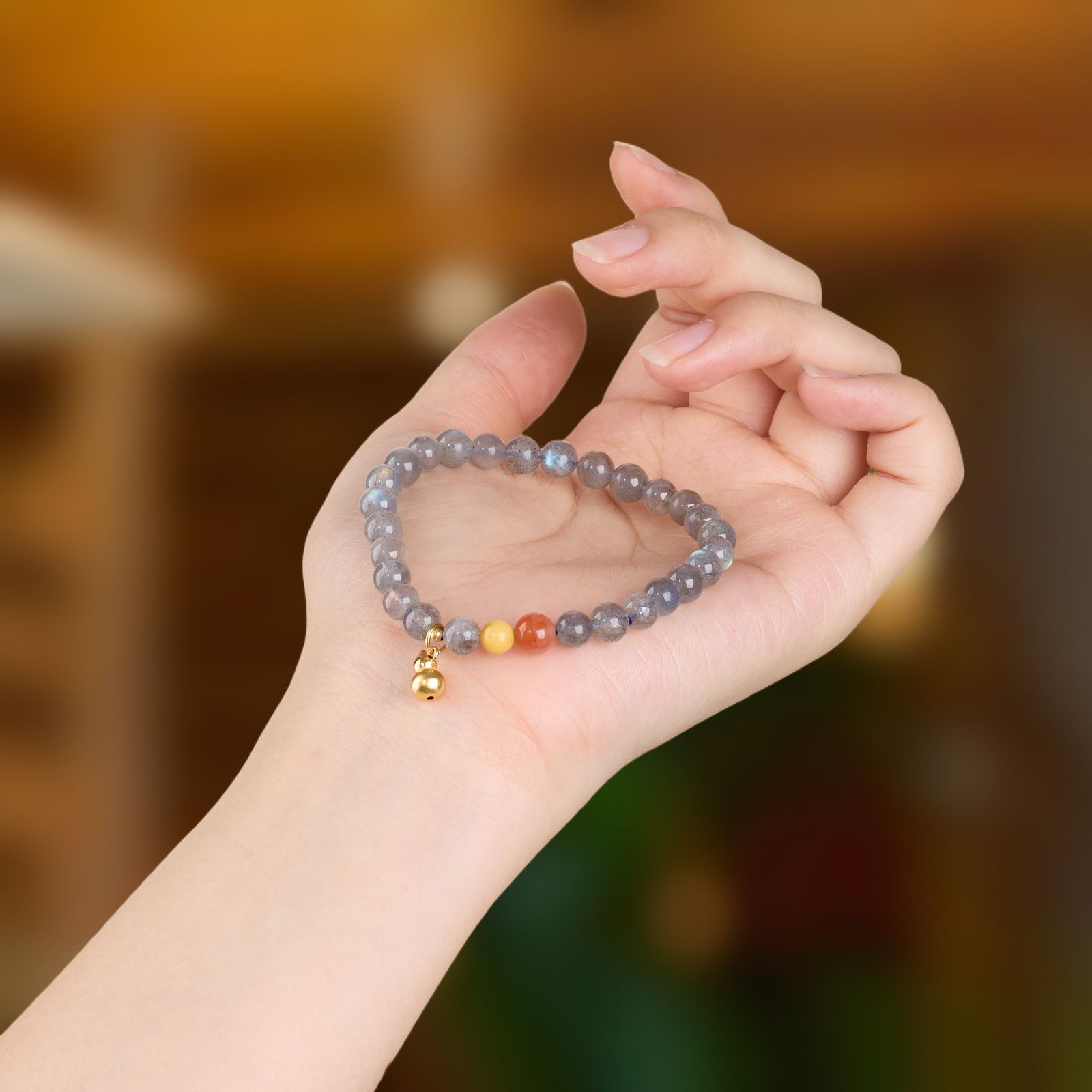 |名称|6.5MM灰月光 925银镀金葫芦 手链