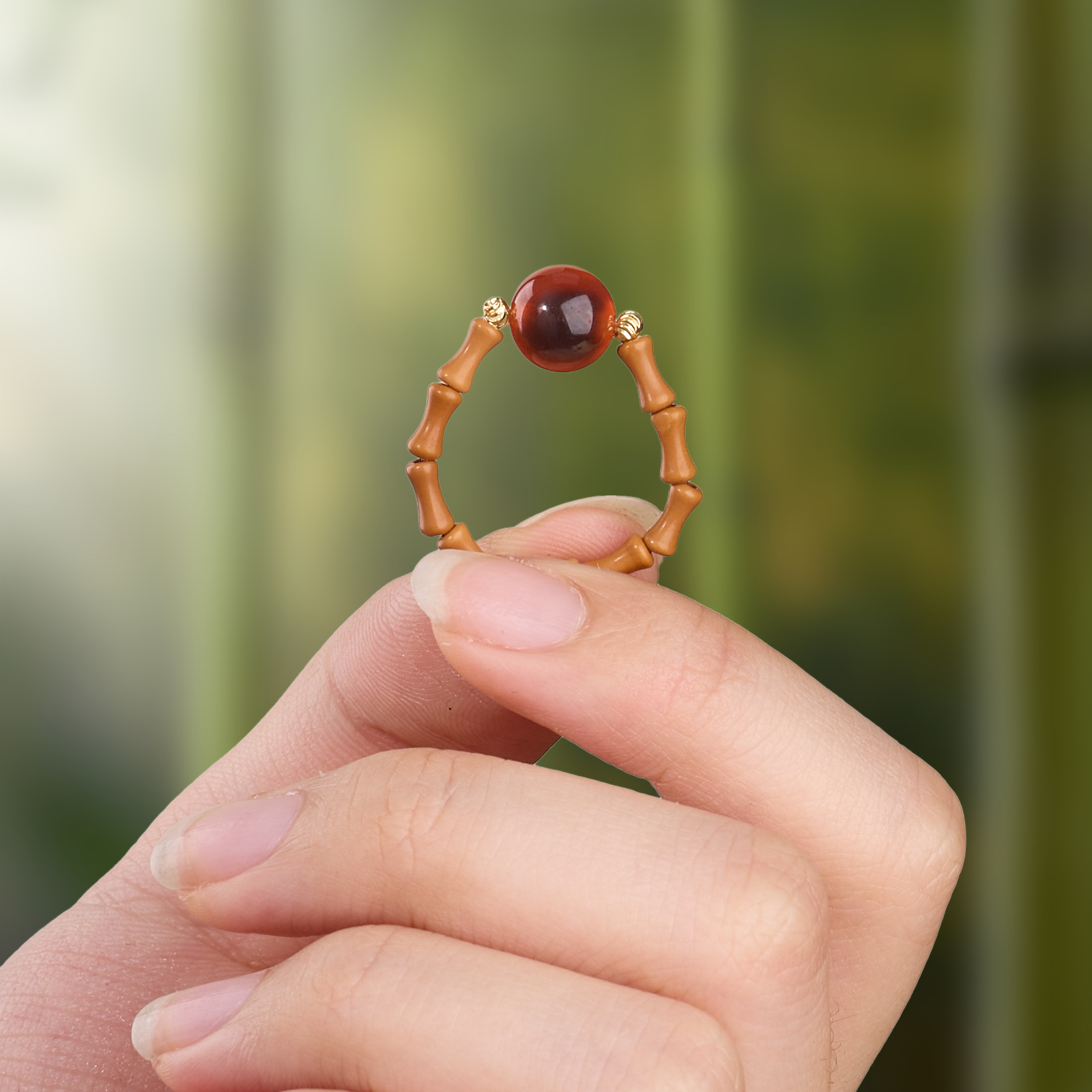 |名称|橄榄核竹节 糖心玛瑙 戒指【五福系列】