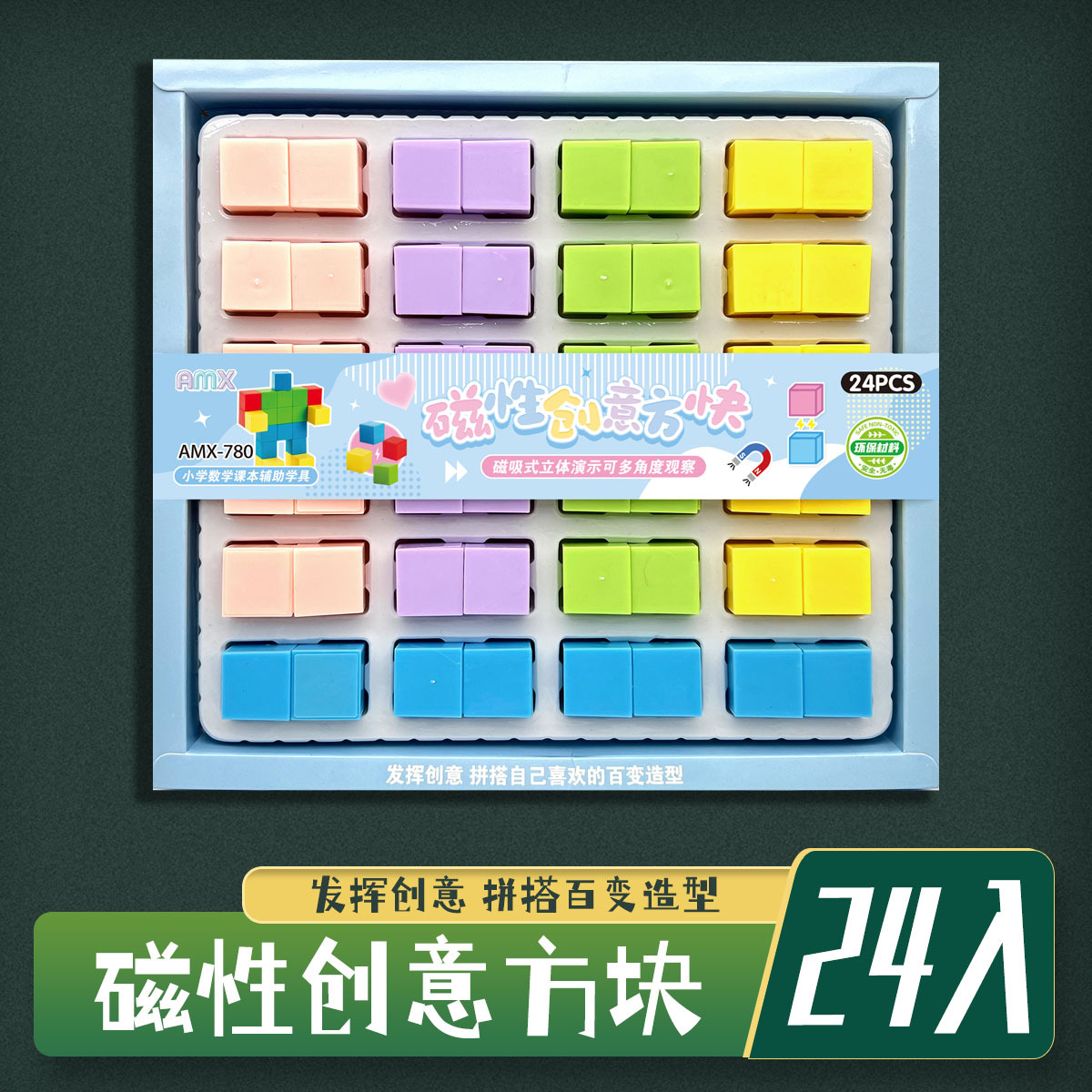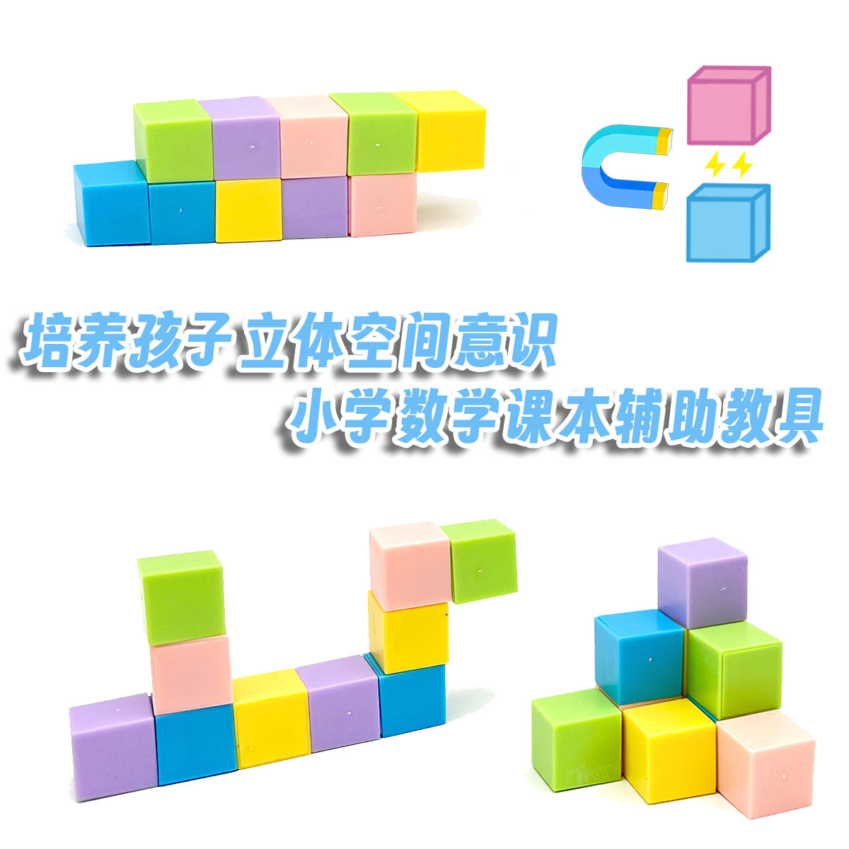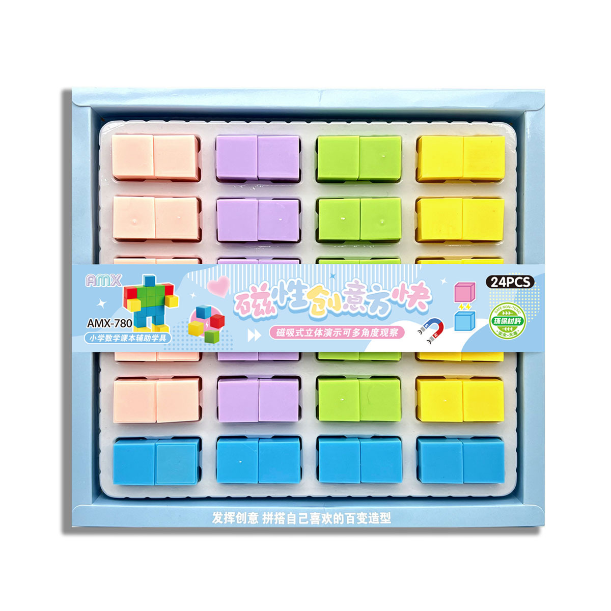 24入磁性创意方块积木 磁力方块体小学数学课本辅助教具学生