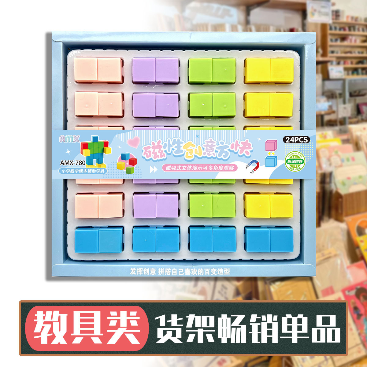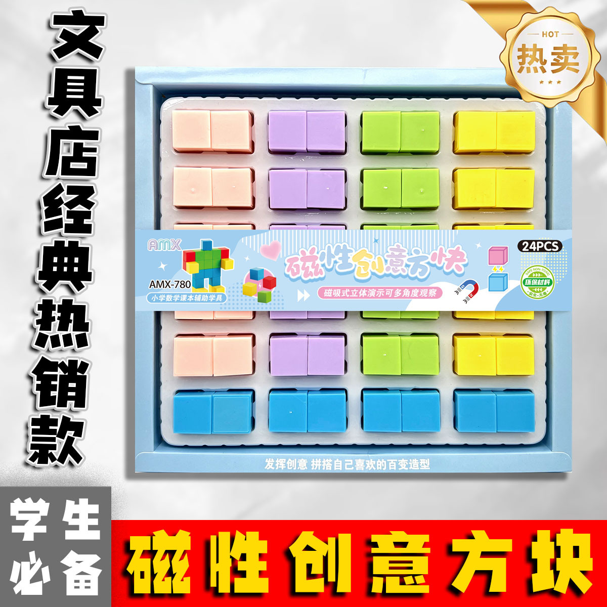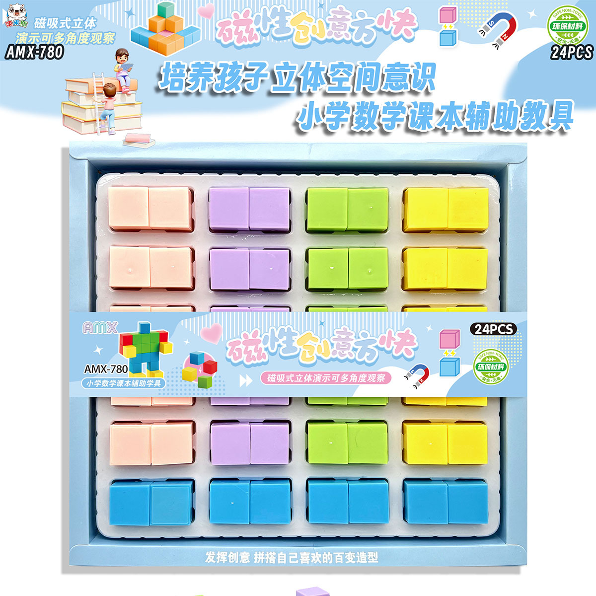 24入磁性创意方块积木 磁力方块体小学数学课本辅助教具学生