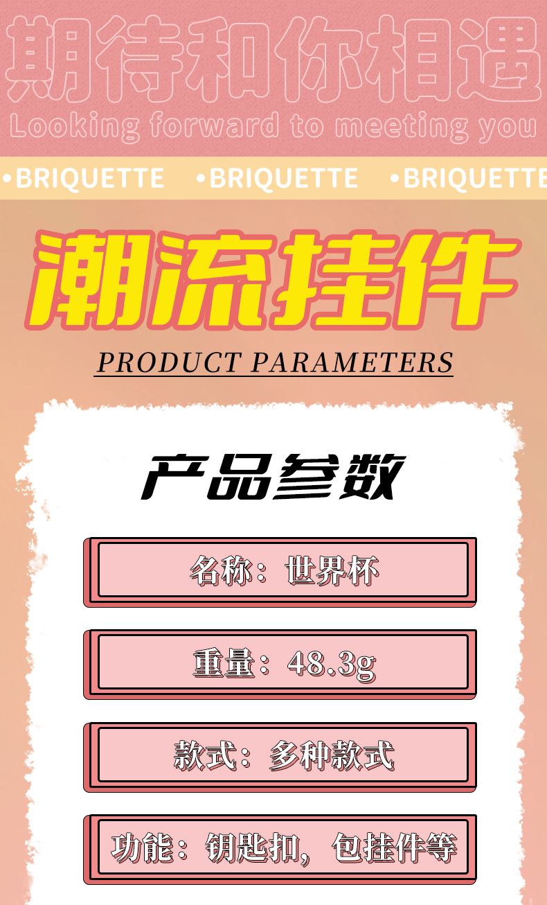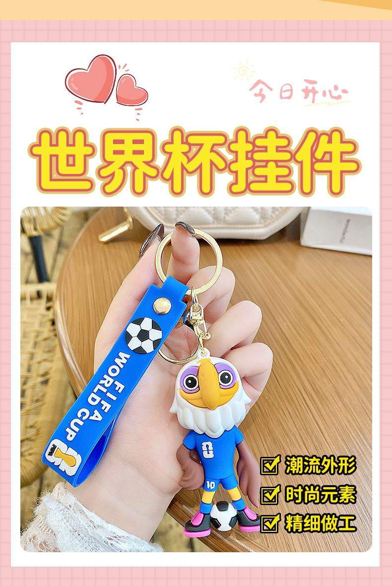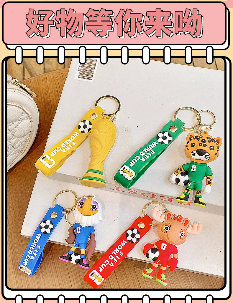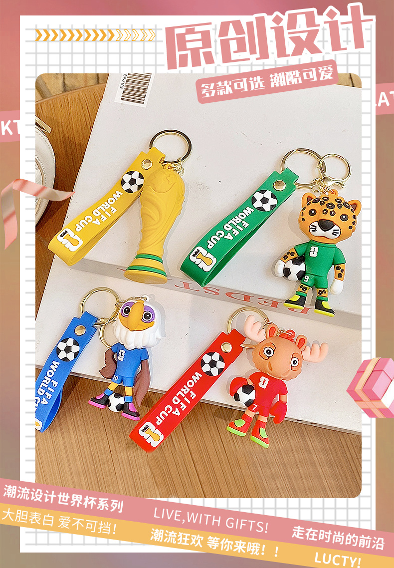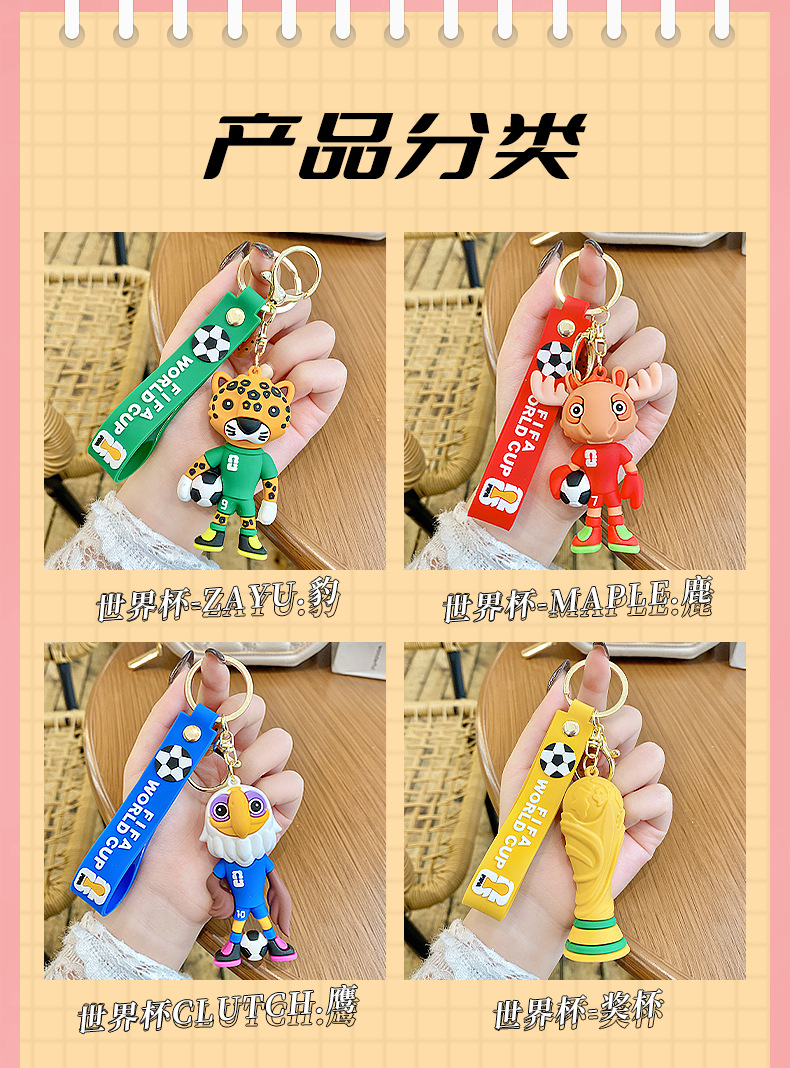 材质: PVC 钥匙配饰分类: 钥匙扣 风格: 卡通 品牌: 润兴饰品 货号: 足球世界杯 包装: 独立包装 适用送礼场合: 婚庆,生日,满月,旅游纪念,毕业,乔迁, 是否专利货源: 否 颜色: 足球世界杯-美洲豹,足球世界杯-驼鹿,足 适用送礼关系: 晚辈,情侣,夫妻,同事,朋友,长辈,孩子 送礼用途: 积分换购礼品,商务礼品,广告礼品,促销赠 是否属于礼品: 是,商务礼品 是否IP授权: 否 适用节日: 通用,圣诞节,情人节,春节,父亲节,母亲 重量: 2.0 kg/个
