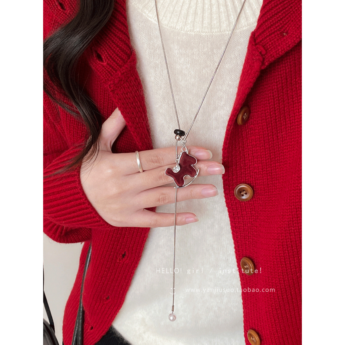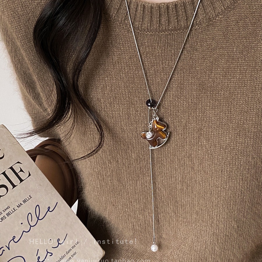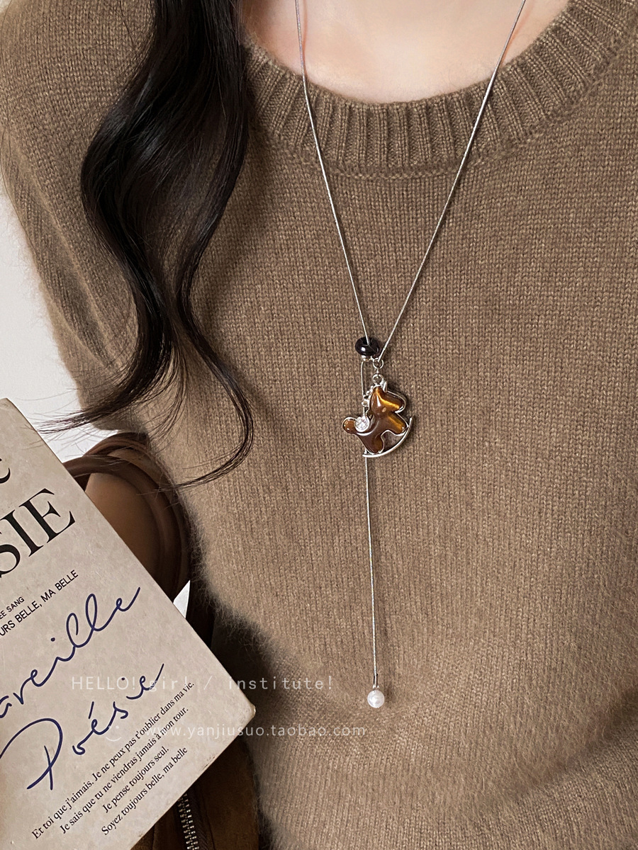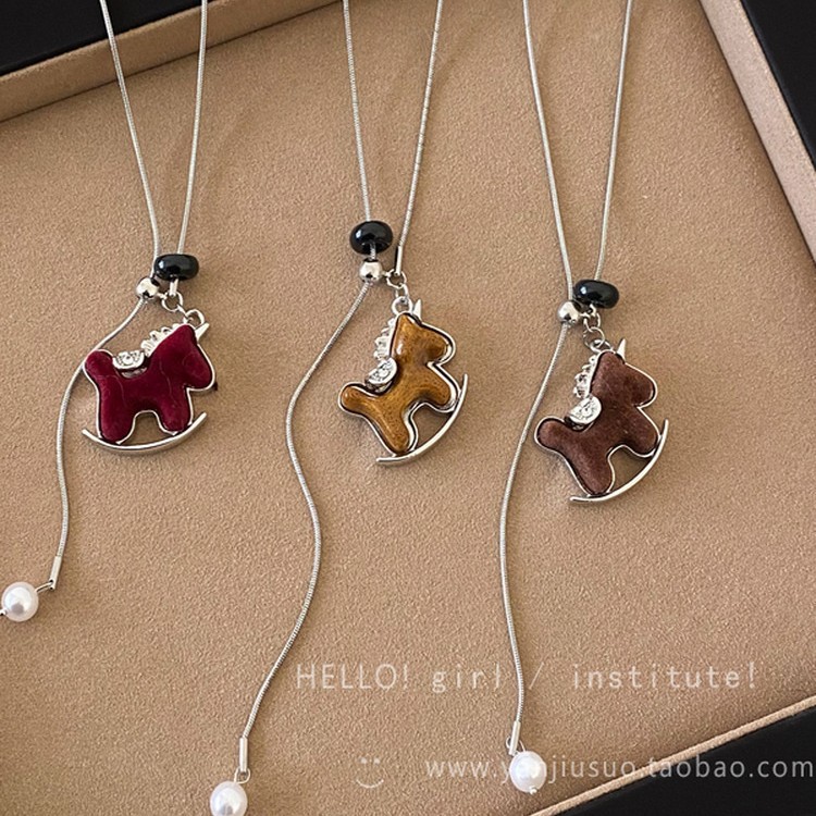 马上好运!酒红色丝绒小马吊坠项链女款复古高级感长款毛衣链配饰 投诉
