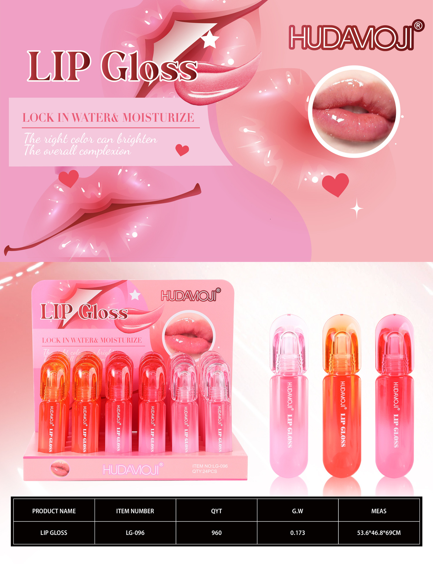 品牌: HUDAMOJI 是否进口: 否 功效: 保湿,自然,滋润,持久,易上色,提升气色 质地: 镜面,水光 产地: 浙江 规格: 正常规格 有可授权的自有品牌: 是 货号: LG-096 系列: 跨境 生产许可证号: 浙妆20210018 品牌类型: 国货品牌 保质期: 3年 是否跨境出口专供货源: 是 主要下游平台: ebay,亚马逊,wish,速卖通,独立 颜色: 唇彩(24PCS/展示盒)仅供外贸跨境平 非特化妆品备案证号: 浙G妆网备字2023014761 适用肤质: 通用 特殊用途化妆品: 否 主要销售地区: 非洲,欧洲,南美,东南亚,北美,东北亚, 适用人群: 普通人群