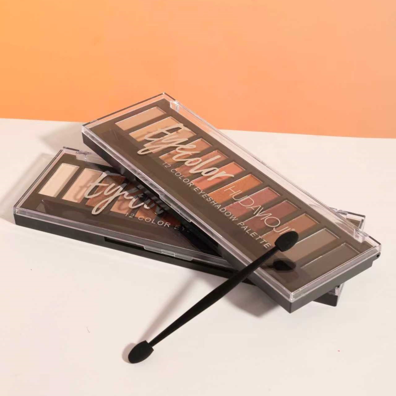 HUDAMOJI12色眼影盘大地色多色珠光哑光眼部彩妆眼影跨境彩妆批发