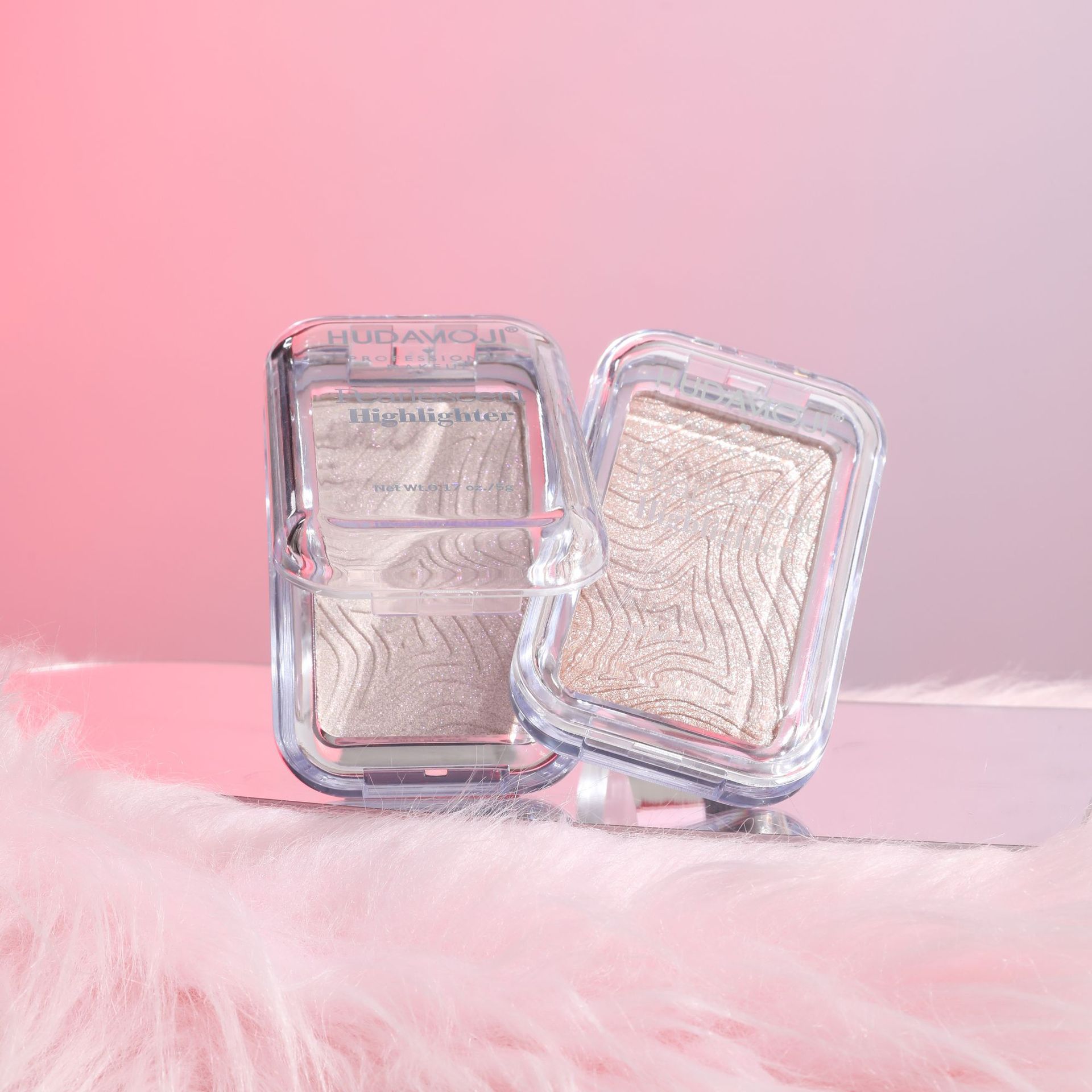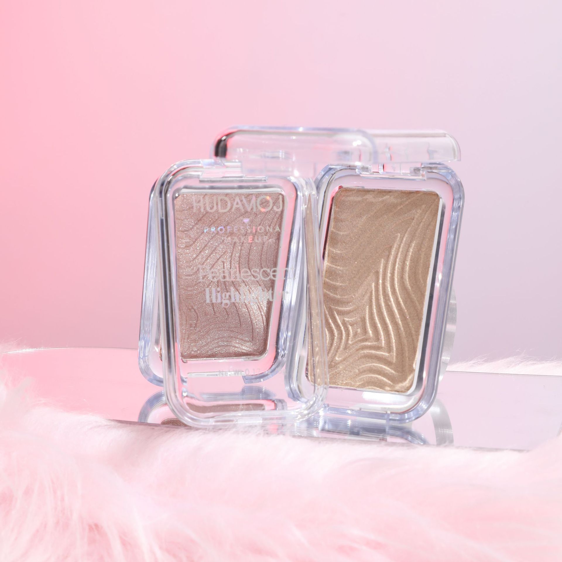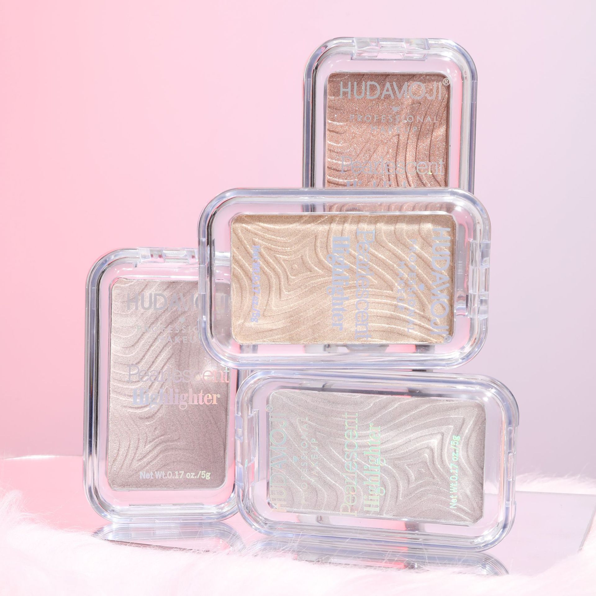 跨境彩妆HUDAMOJI高光粉饼四色自然立体提亮修容高光盘现货批发