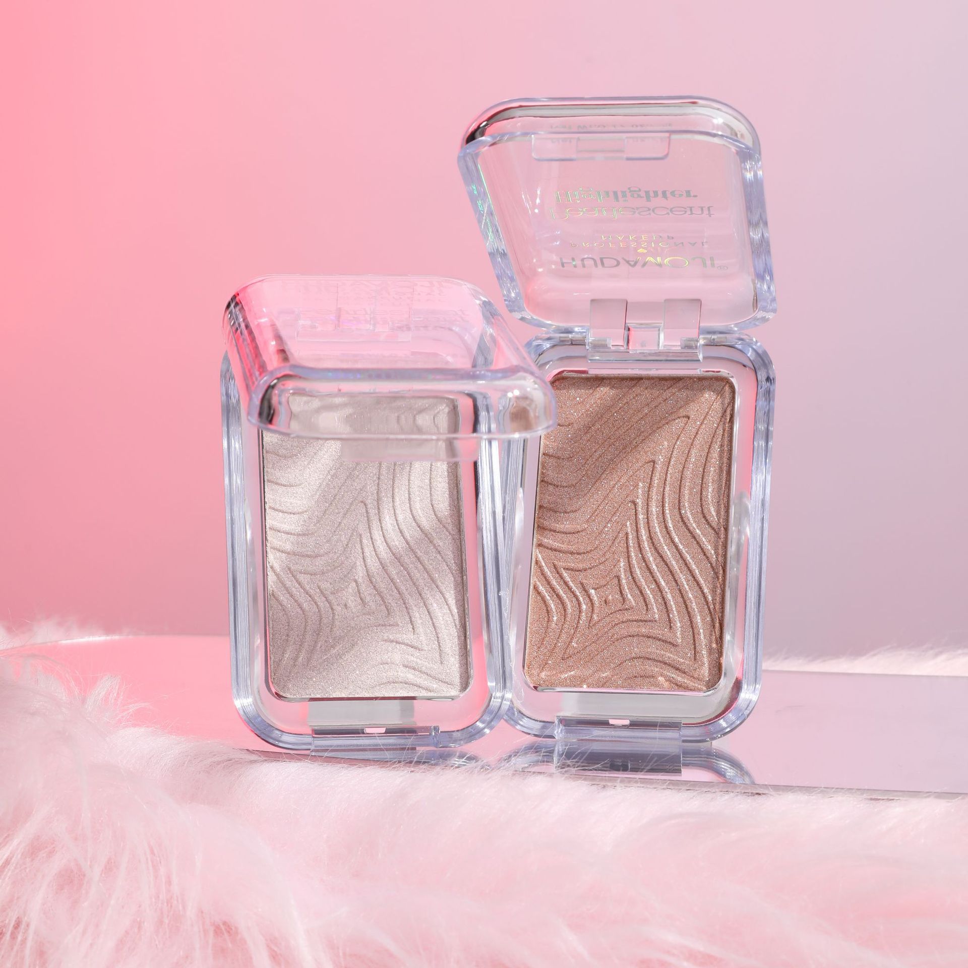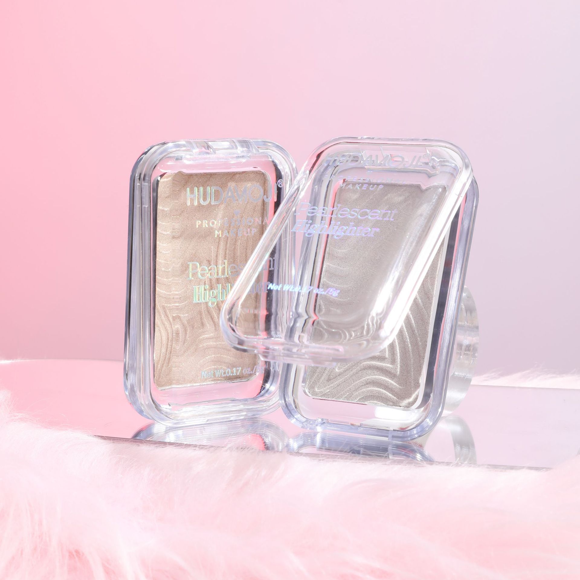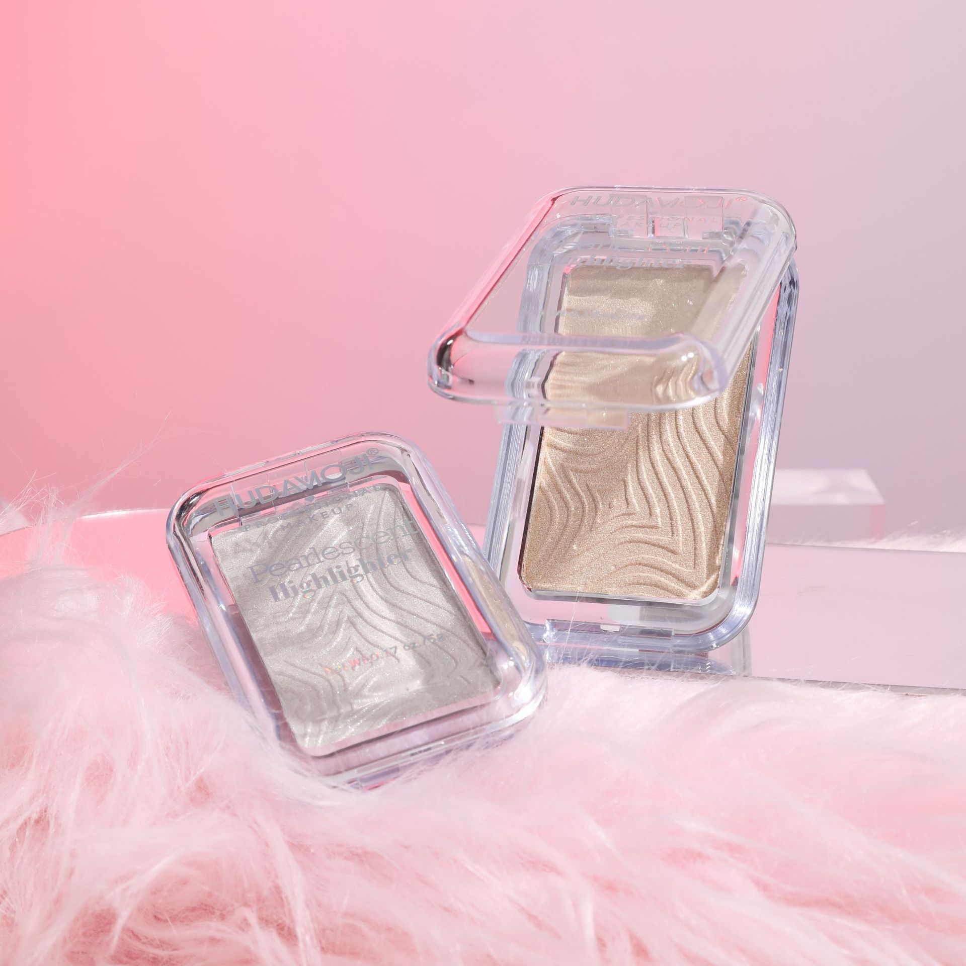 跨境彩妆HUDAMOJI高光粉饼四色自然立体提亮修容高光盘现货批发