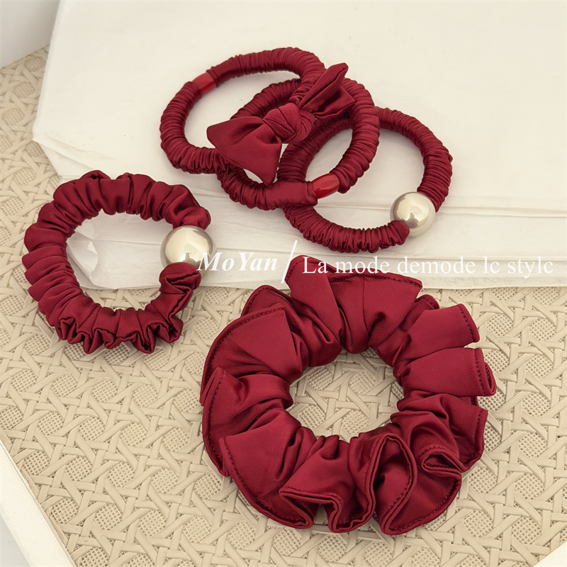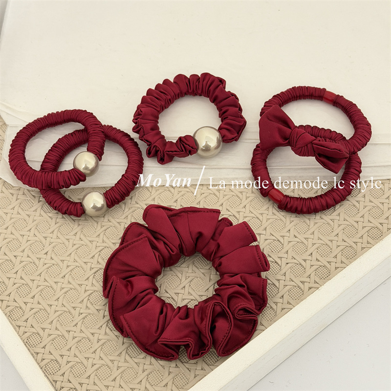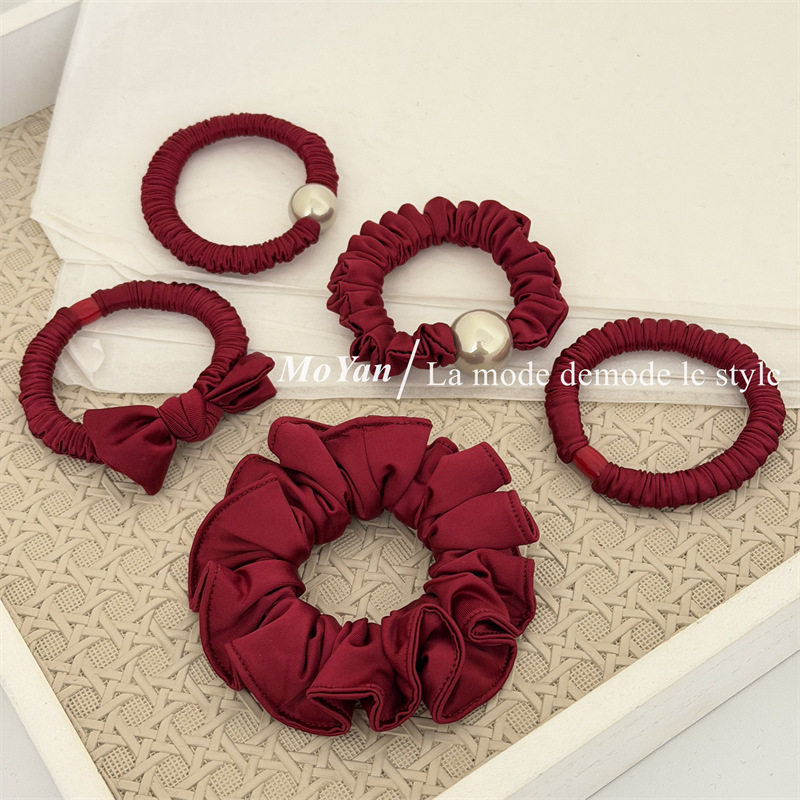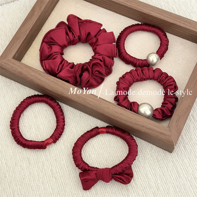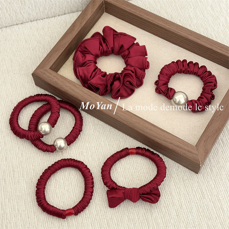 新年红色系高弹力小肠发圈高级感打结珍珠发绳马尾头绳气质橡皮筋