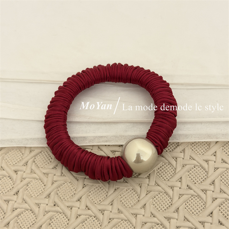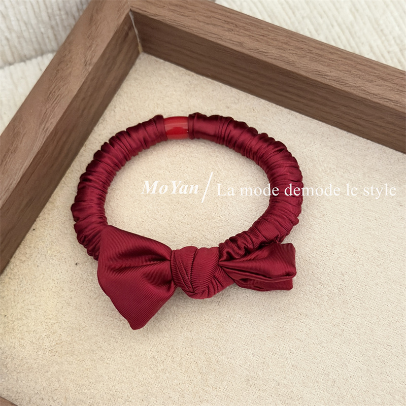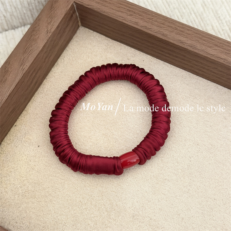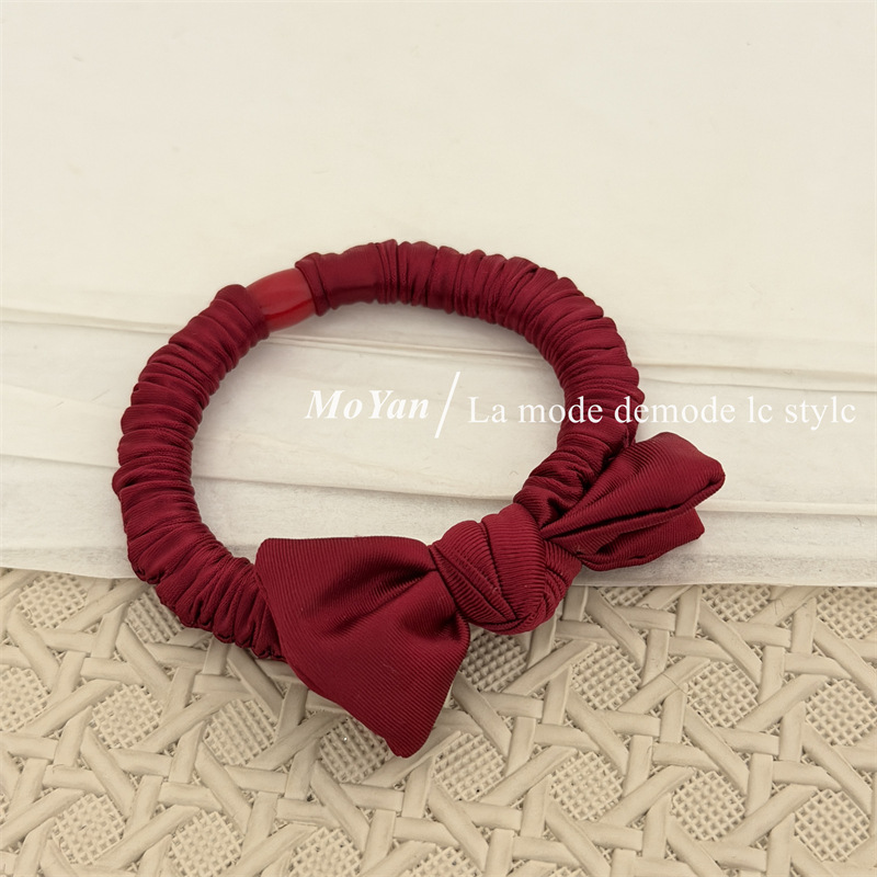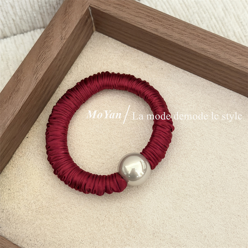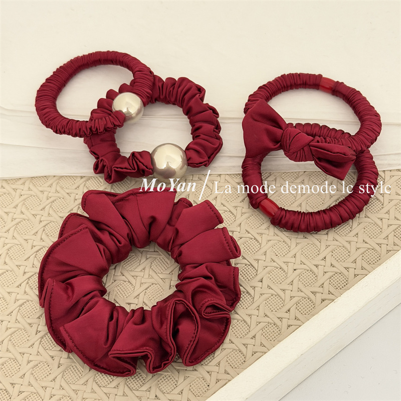 新年红色系高弹力小肠发圈高级感打结珍珠发绳马尾头绳气质橡皮筋