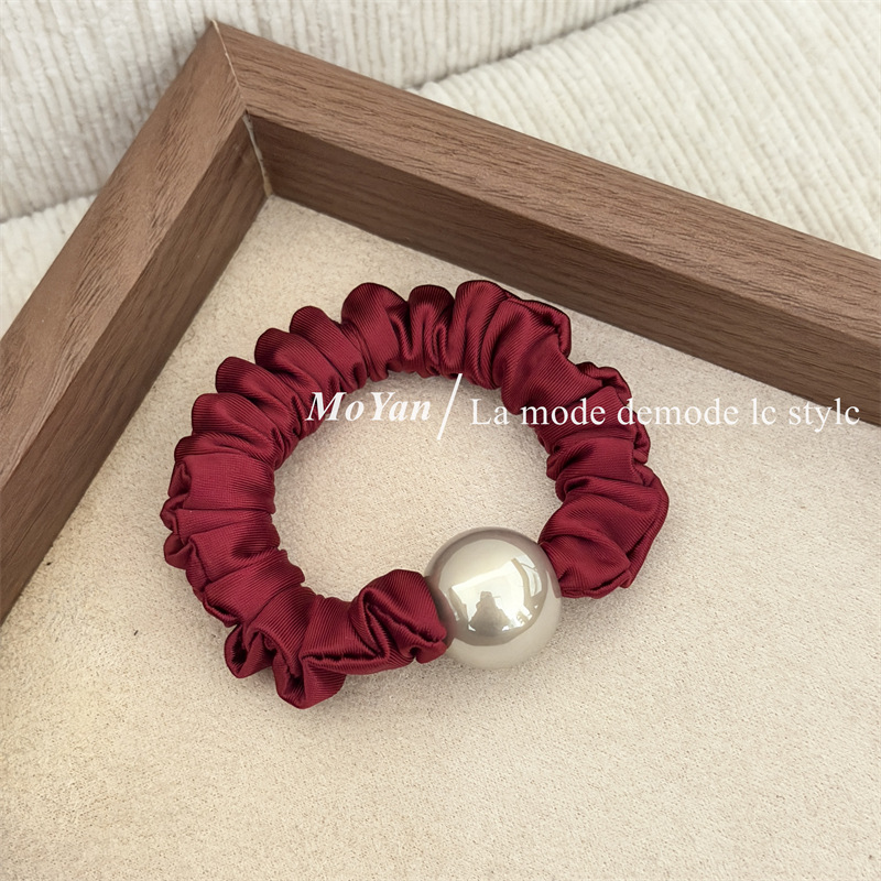 新年红色系高弹力小肠发圈高级感打结珍珠发绳马尾头绳气质橡皮筋 投诉