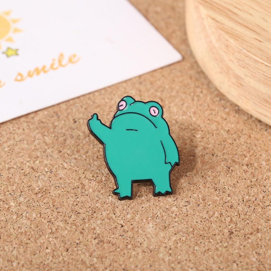 跨境爆款中指手势青蛙胸针搞笑竖中指金属滴油青蛙徽章背包装饰扣 English | 投诉