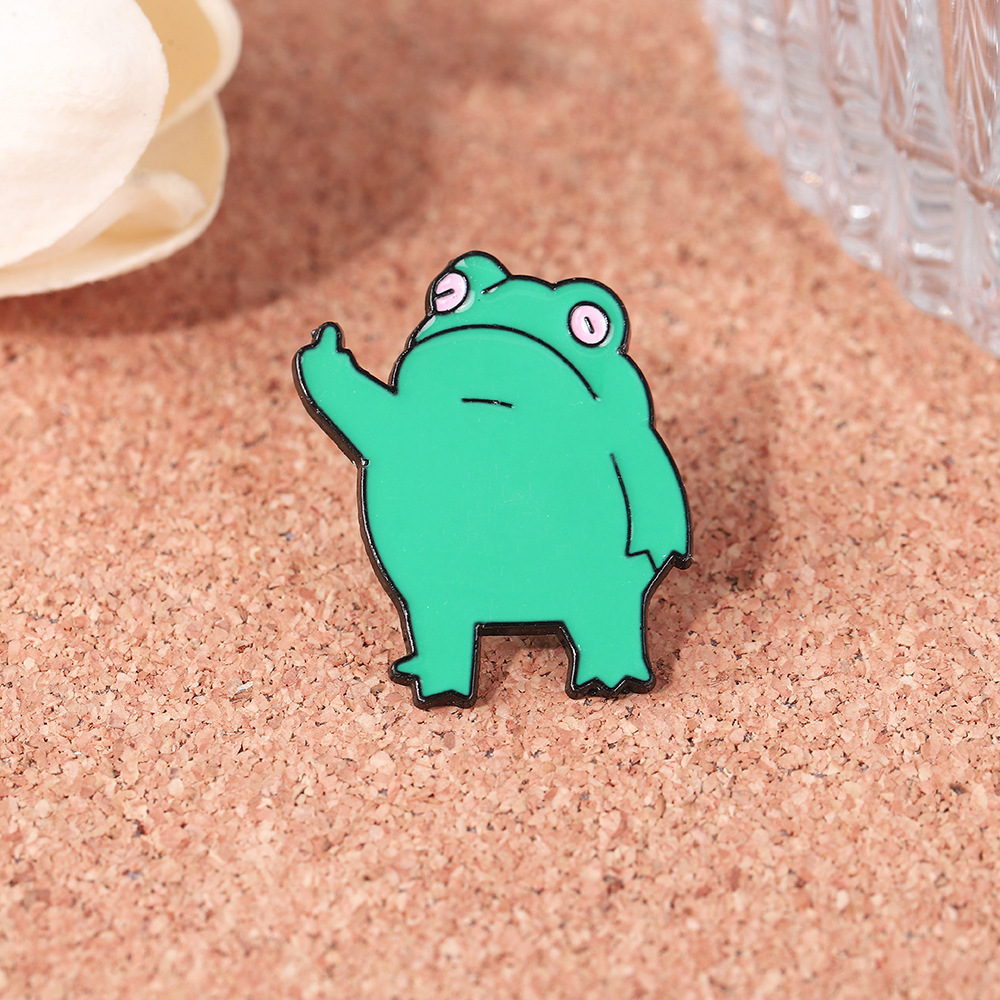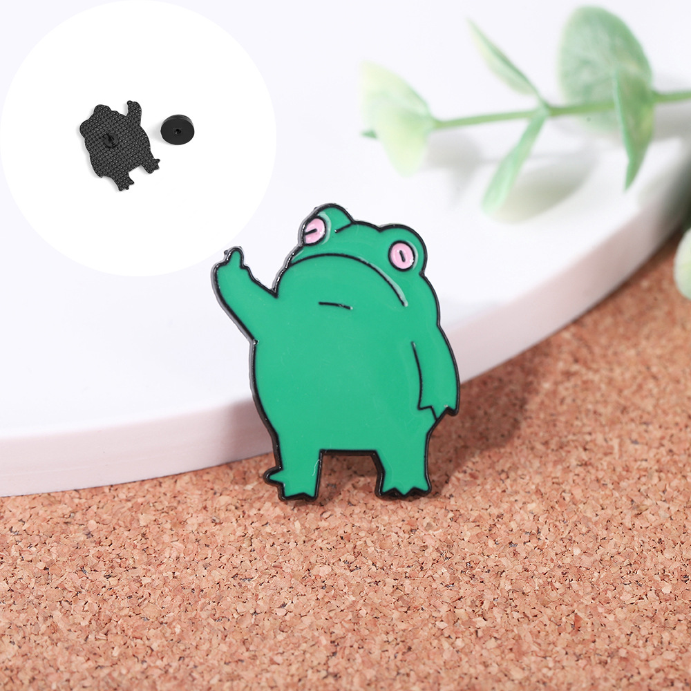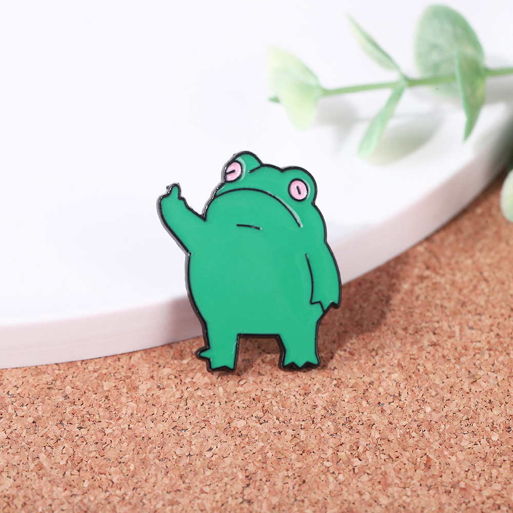 跨境爆款中指手势青蛙胸针搞笑竖中指金属滴油青蛙徽章背包装饰扣