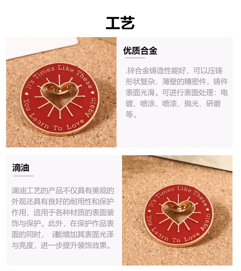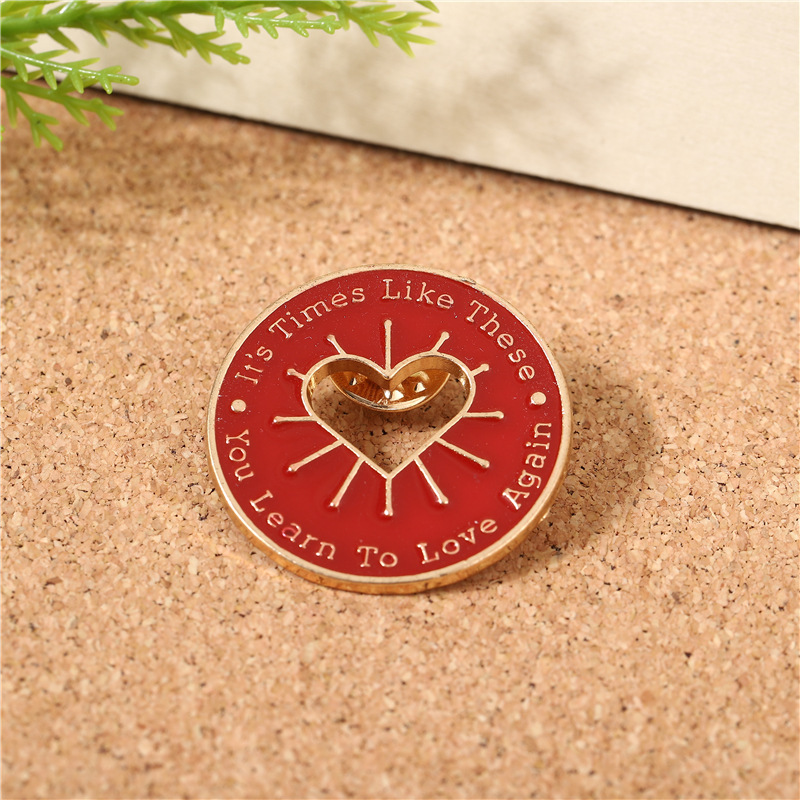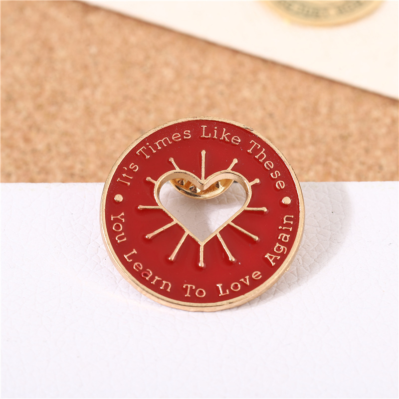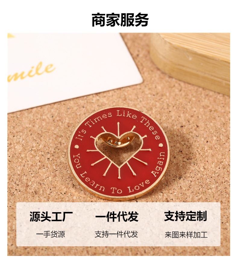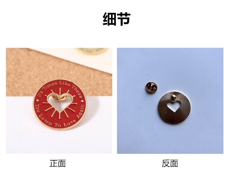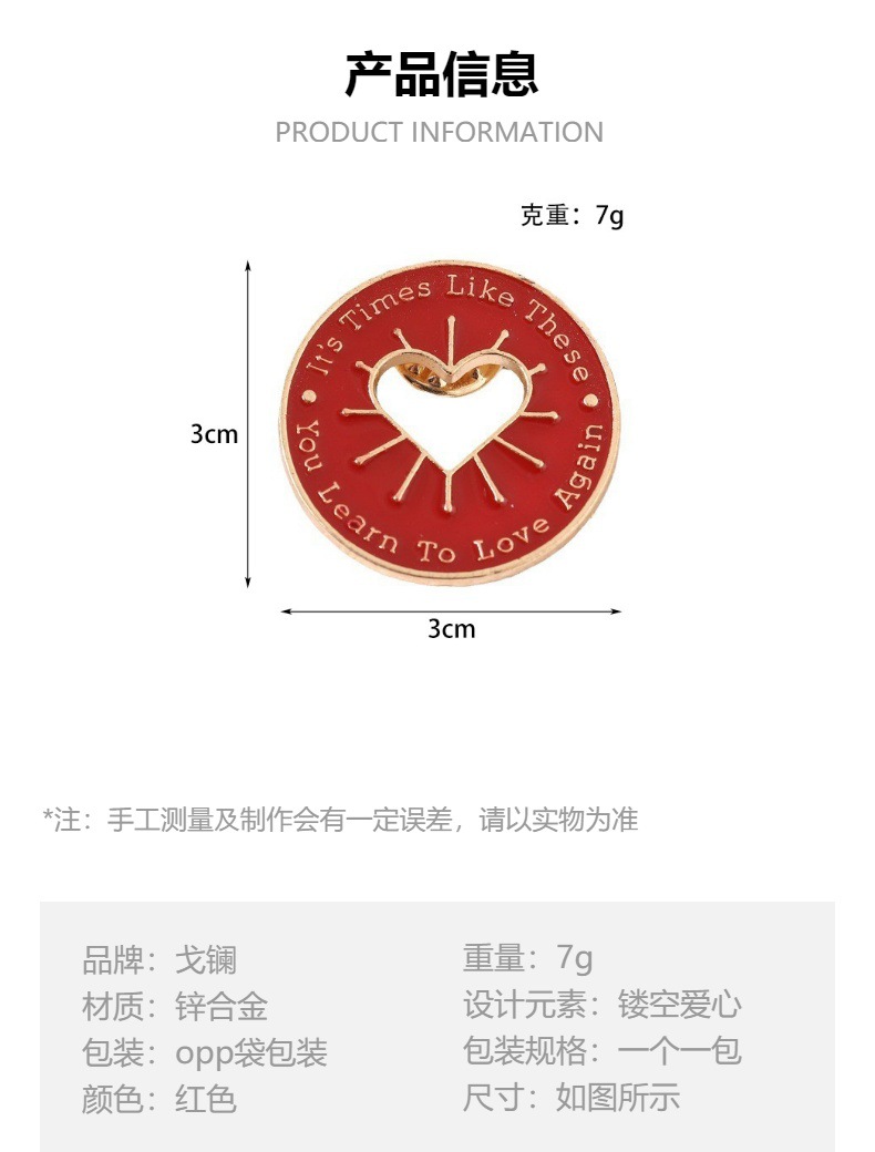 欧美创意红色镂空爱心胸针 可爱圆型徽章 衣服背包配饰胸花饰品 English | 投诉