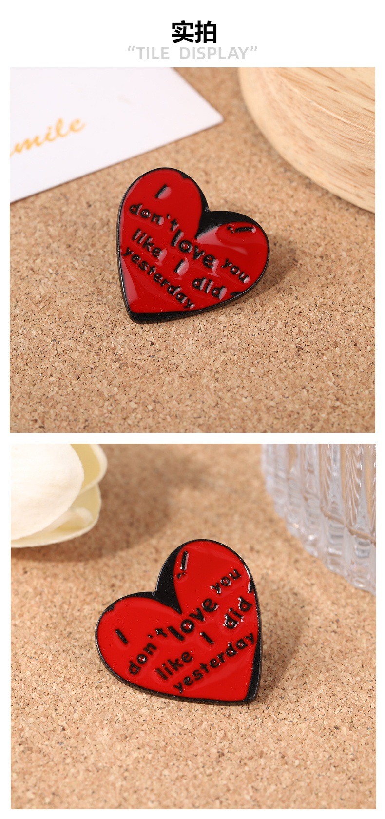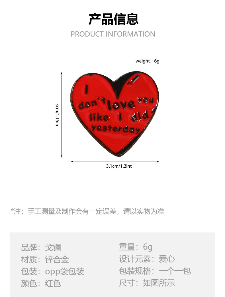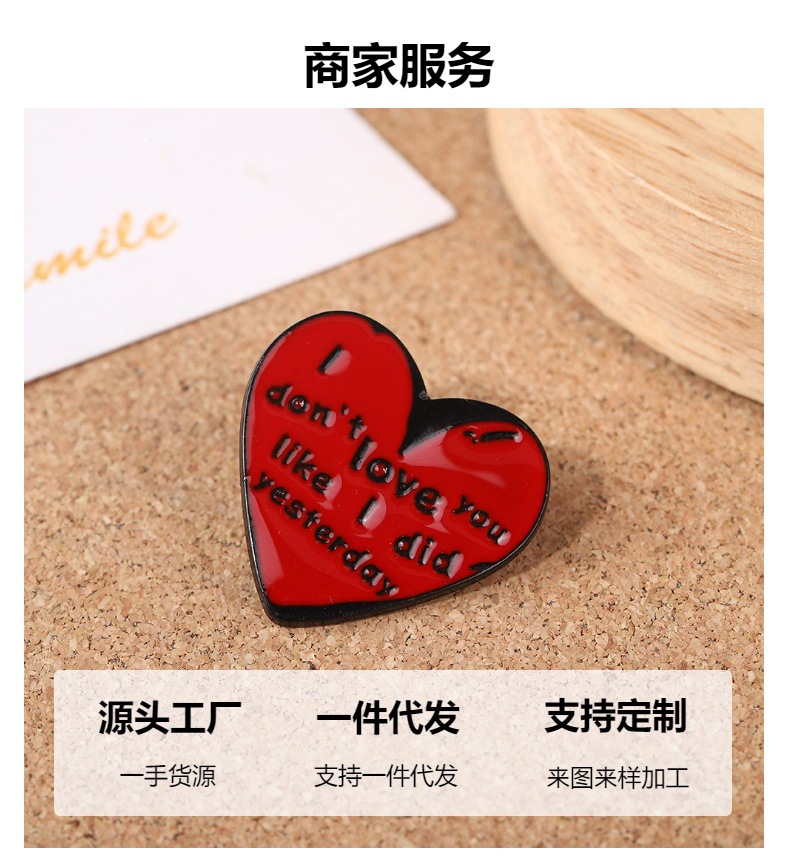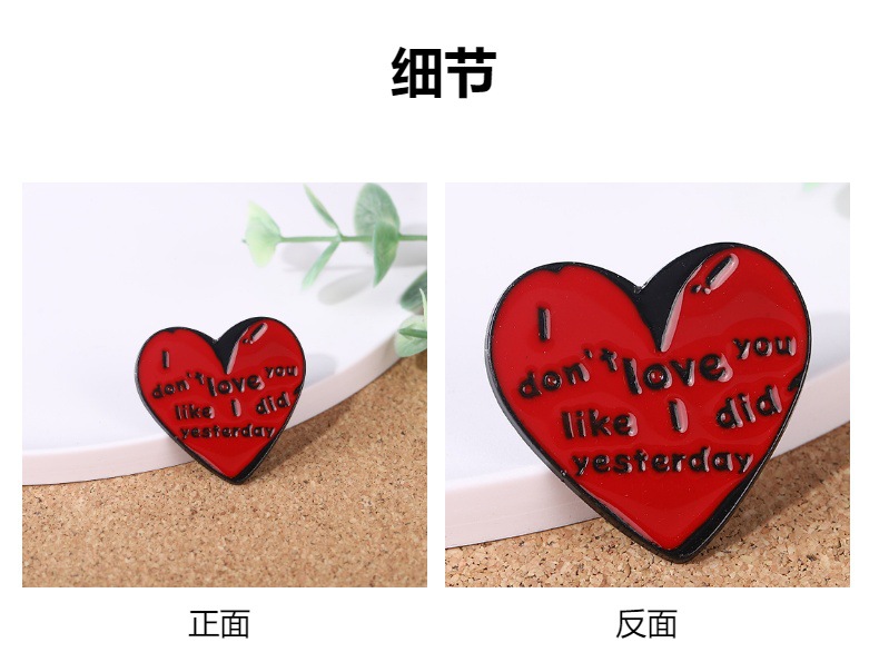 伤心语录我不能像昨天那么爱你了爱心胸针金属滴油徽章领针 English | 投诉