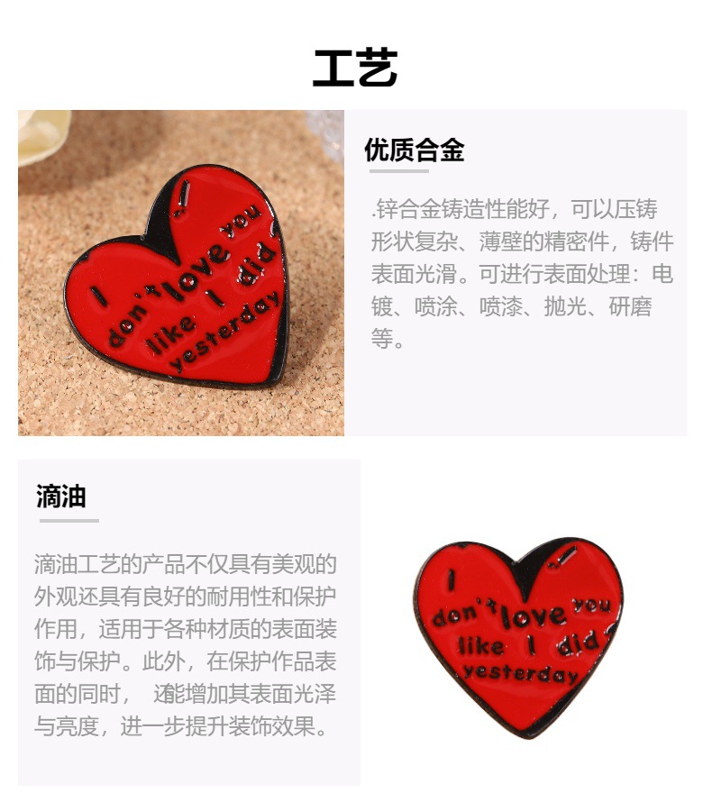 伤心语录我不能像昨天那么爱你了爱心胸针金属滴油徽章领针