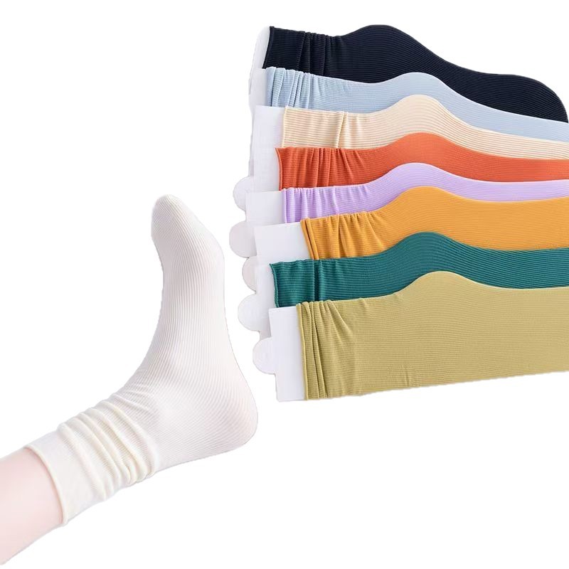 夏天堆堆袜子女锦纶舒适透气冰丝袜日系糖果色薄款中筒袜冰冰袜子 English | 投诉